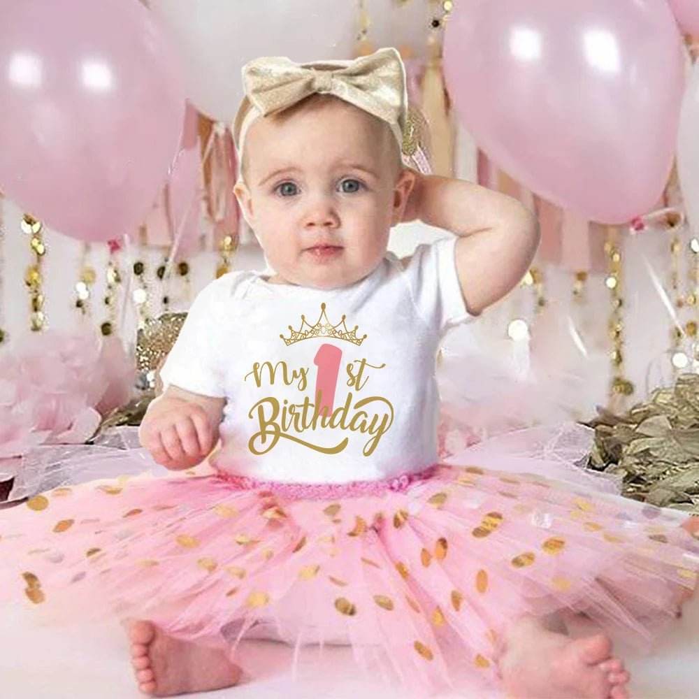 With its delightful design and comfortable fit, this outfit is more than just clothing—it's a keepsake that will remind you of your baby girl's first big celebration. Capture the joy and make memories that last a lifetime with this beautiful birthday set.