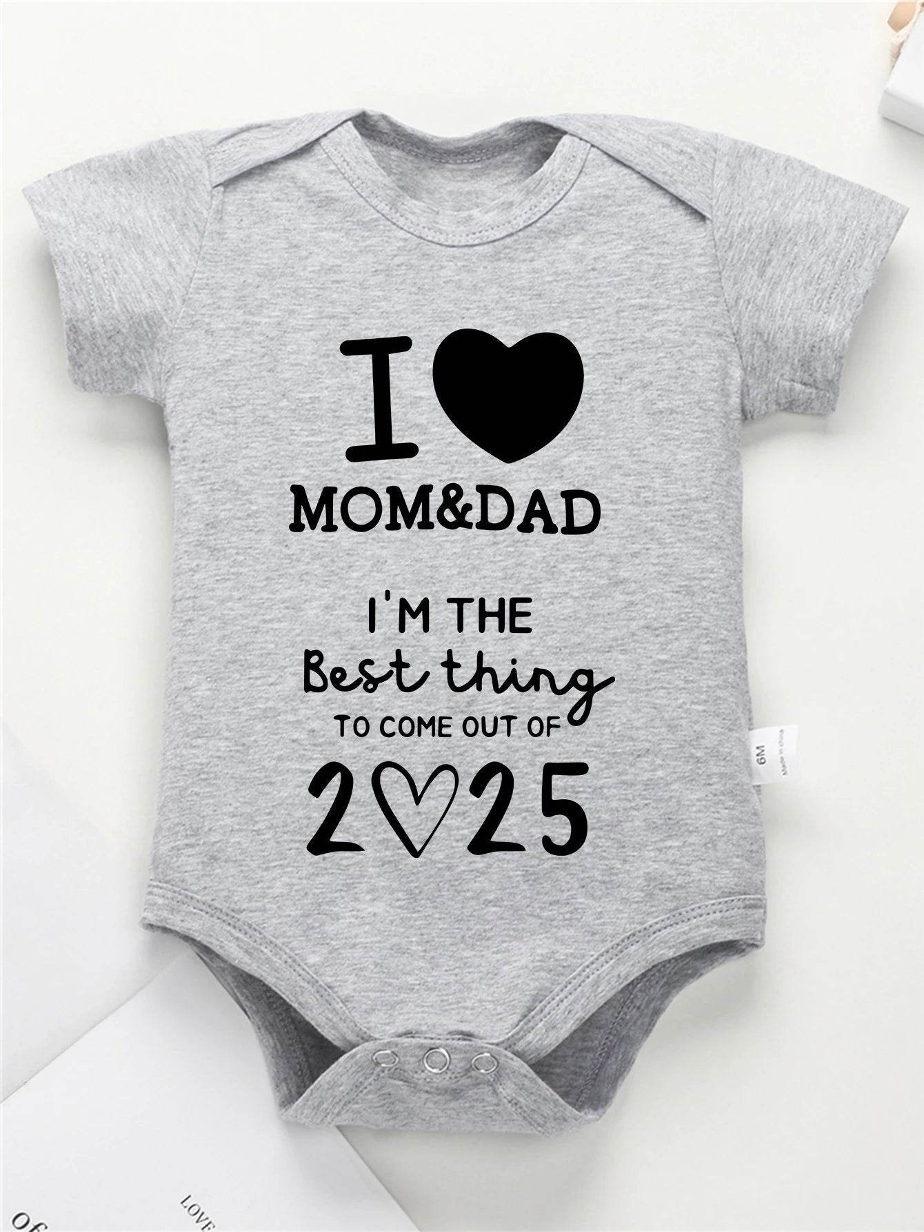 Introducing the Baby Girl Boy Cotton Best Thing 2025 Romper, a delightful addition to your baby's wardrobe. Crafted from high-quality cotton, this romper ensures ultimate comfort and durability for your little explorer. Its charming design, featuring a playful "I ❤️ Mom & Dad" print, makes it perfect for any occasion, from playdates to family gatherings.
