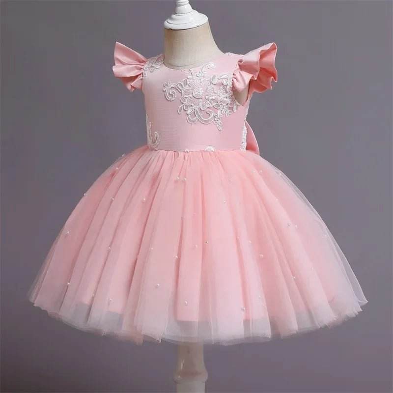 Baby Pink Lace Floral Girl Party Dress - Mad Fly Essentials