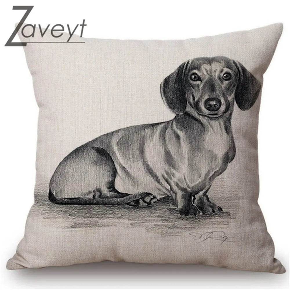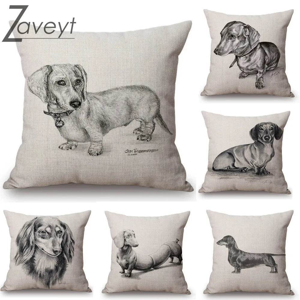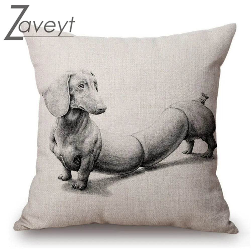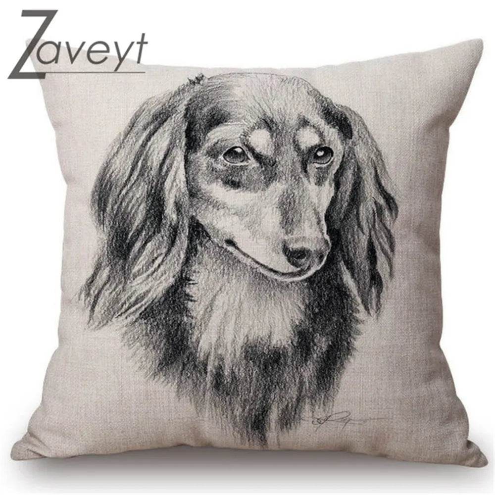 With its detailed black and white sketch, this pillowcase is perfect for dachshund enthusiasts and pet lovers alike. The intricate design captures the playful and loving nature of dachshunds, making it a conversation starter and a cozy companion for your sofa or bed.