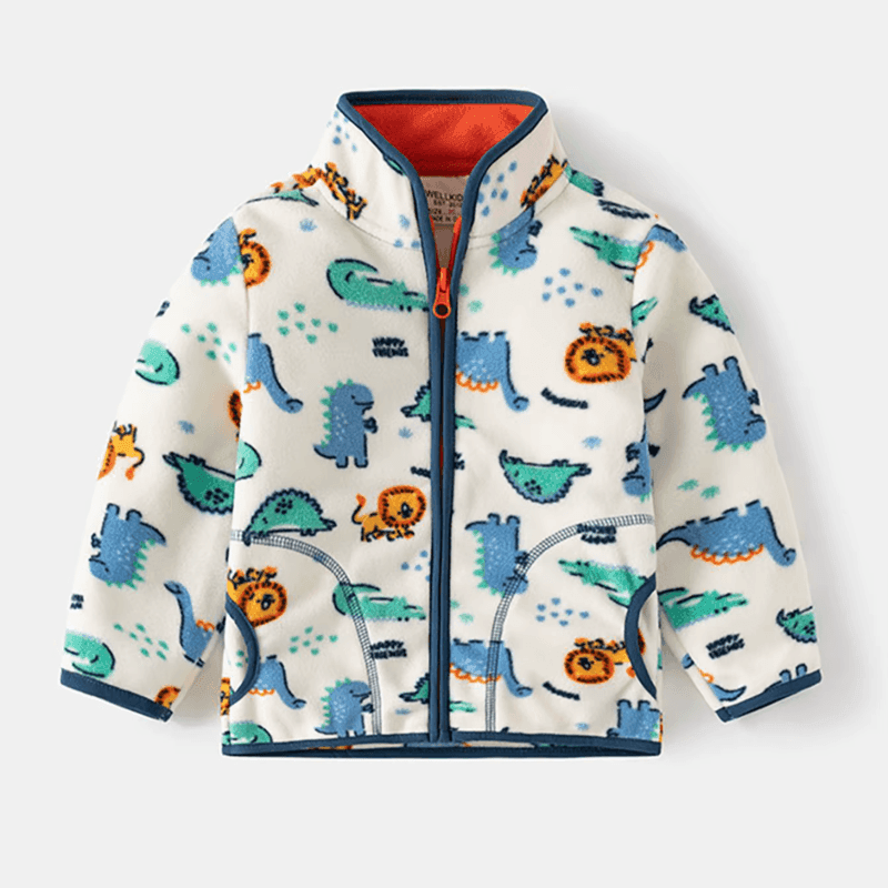 Playful Design: The jacket features vibrant dinosaur cartoons that spark imagination and fun.