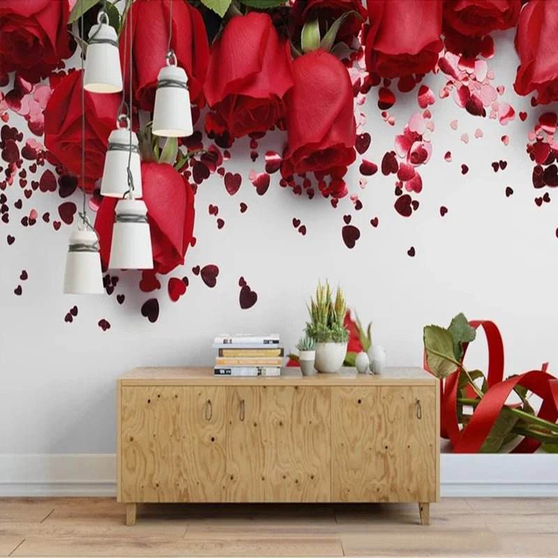 Transform your home today with the Custom Mural Modern 3D Red Rose Romantic Flower Wallpaper and let your walls tell a story of elegance and romance.