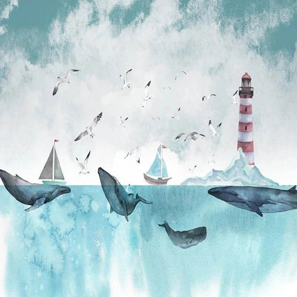 Bring the serene beauty of the Nordic seaside into your home with our Custom 3D Nordic Lighthouse Beach Wallpaper from JD Home Decor. Perfect for kids' rooms, living rooms, or even kitchens, this wallpaper features a whimsical scene of lighthouses, sailboats, and playful whales, creating a dreamy escape right in your home.