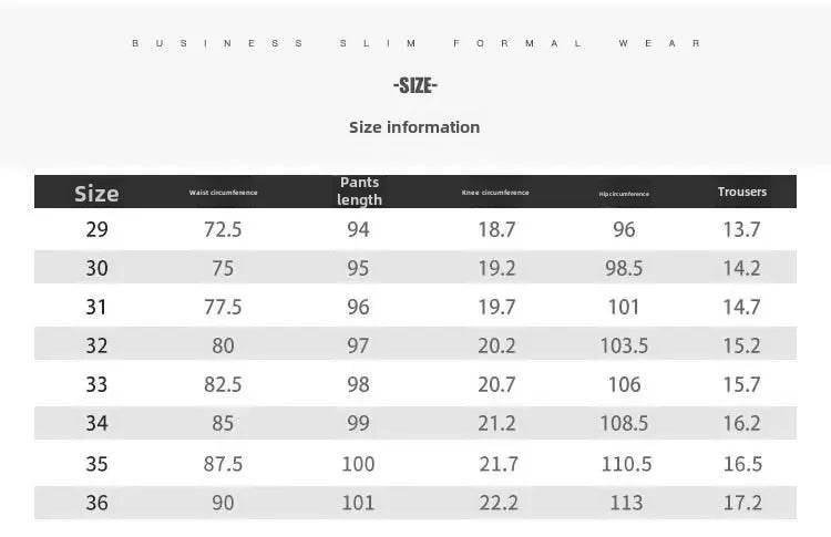 Step into a world of refined elegance with the Men Classic Business Casual Suit Pants. Designed for the modern professional, these pants offer a perfect blend of style and comfort, making them an essential addition to your wardrobe. Whether you're heading to the office or attending a smart-casual event, these pants ensure you look polished and feel comfortable all day long.
