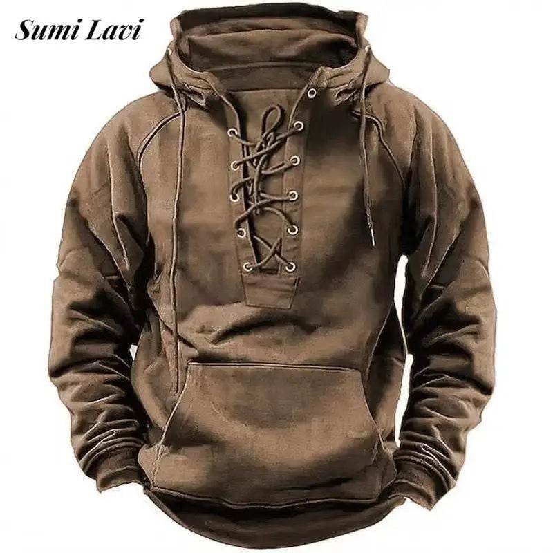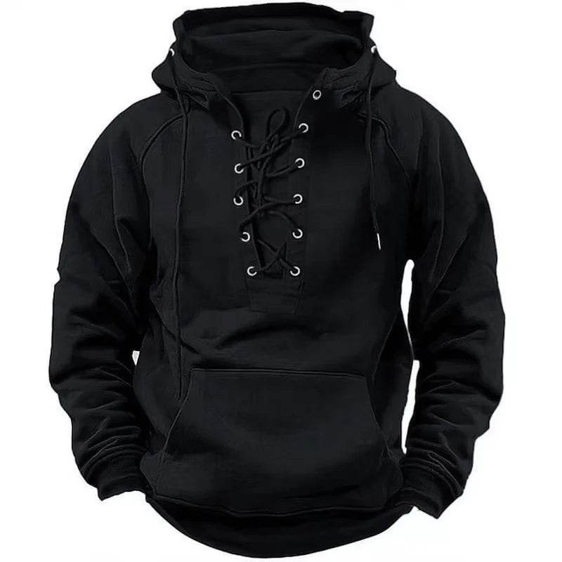Introducing the Men Solid Medieval Lace-Up Long Hoodies, a perfect blend of comfort and style for the modern-day knight. Crafted by JML, a leader in innovative men's fashion, this hoodie is designed to make a statement. The unique lace-up front adds a touch of medieval flair, making it a standout piece in any wardrobe.