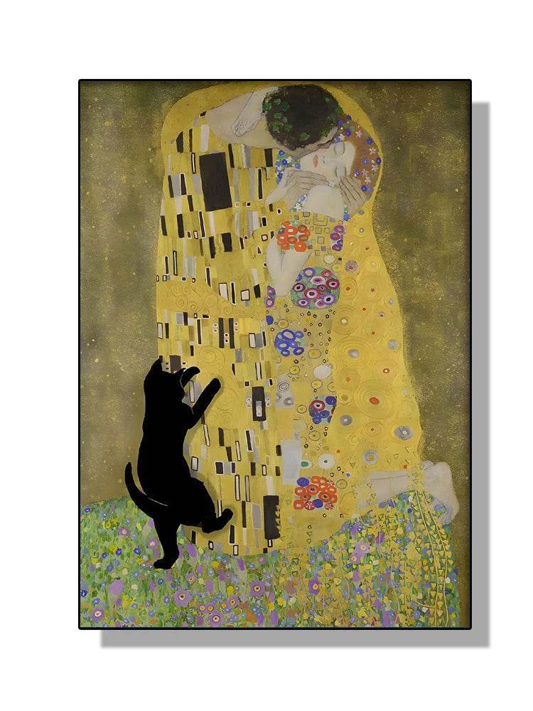 Mona-Lisa Van Gogh Black-Cat Canvas Wall Decor
