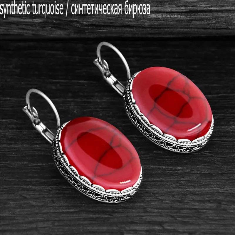 Each earring features a timeless oval design that reflects refined craftsmanship and enduring elegance. The intricate detailing around the stones enhances their natural allure, making them a standout piece in any ensemble. The earrings are available in various metal colors, including simulated amber and synthetic turquoise, allowing you to choose the perfect match for your style.