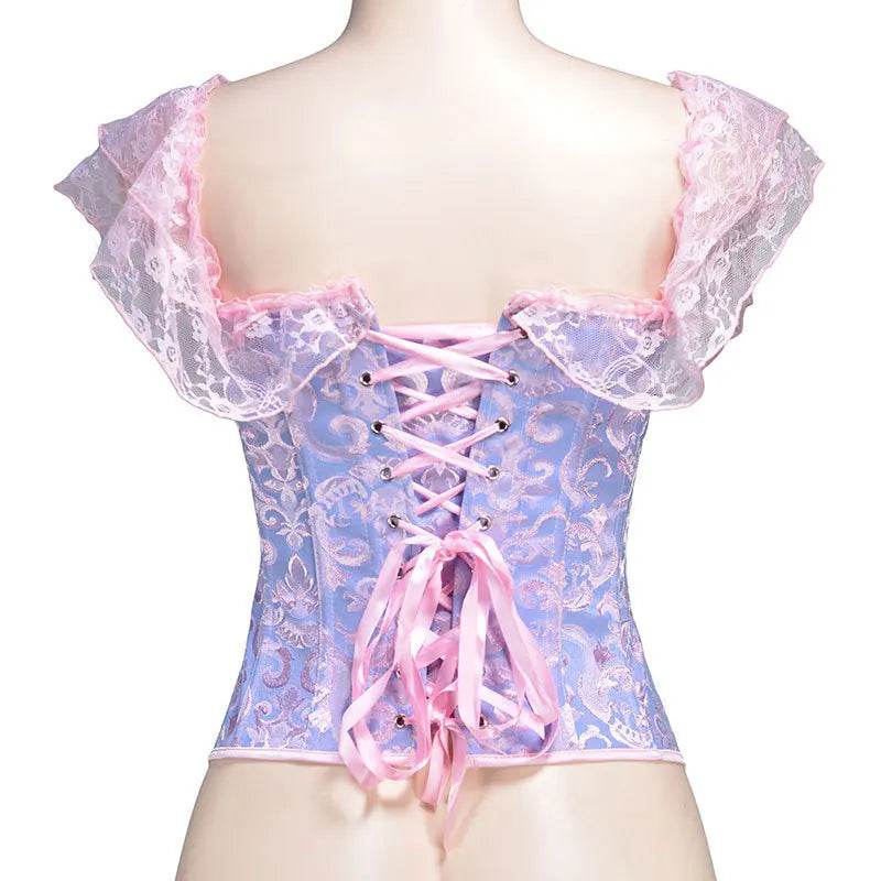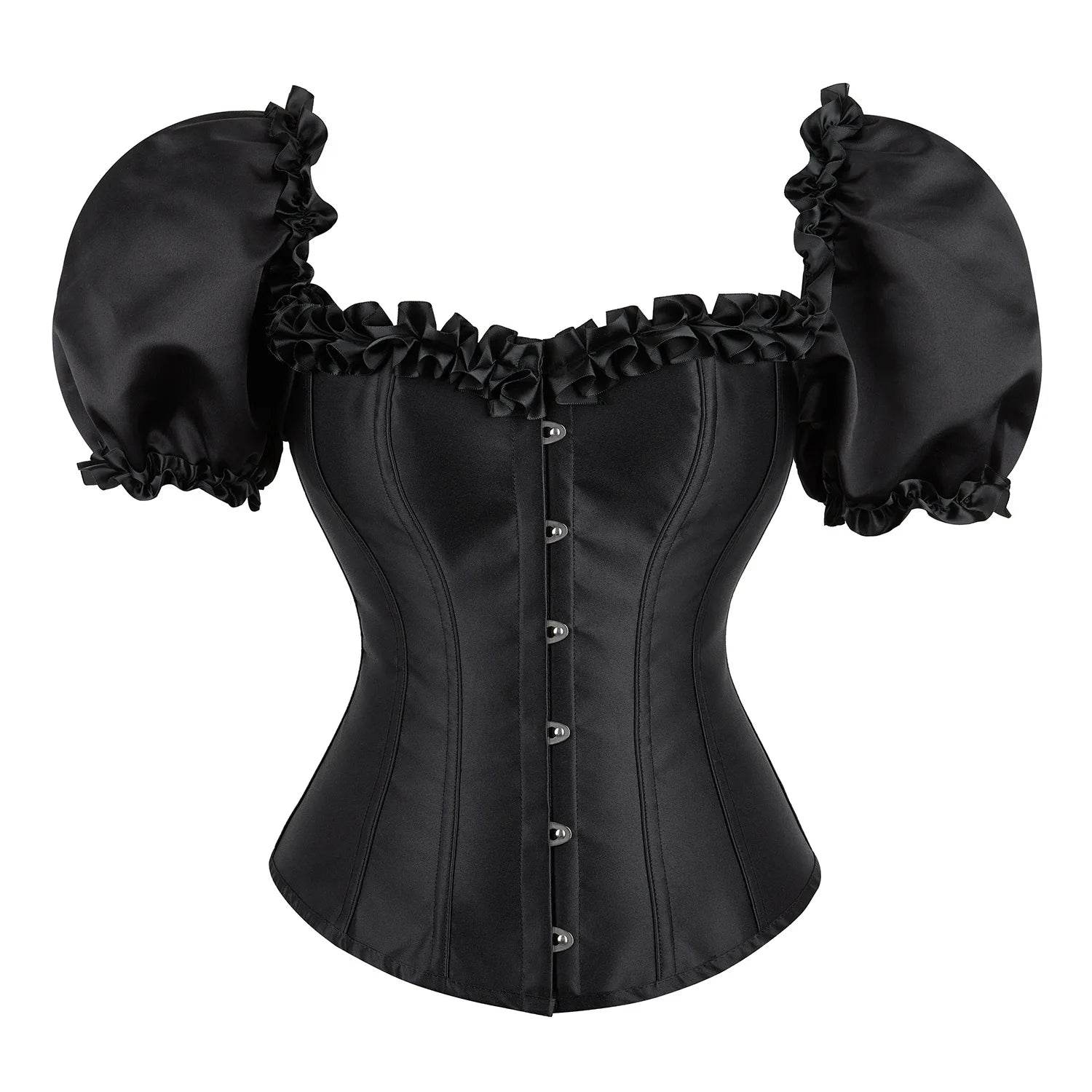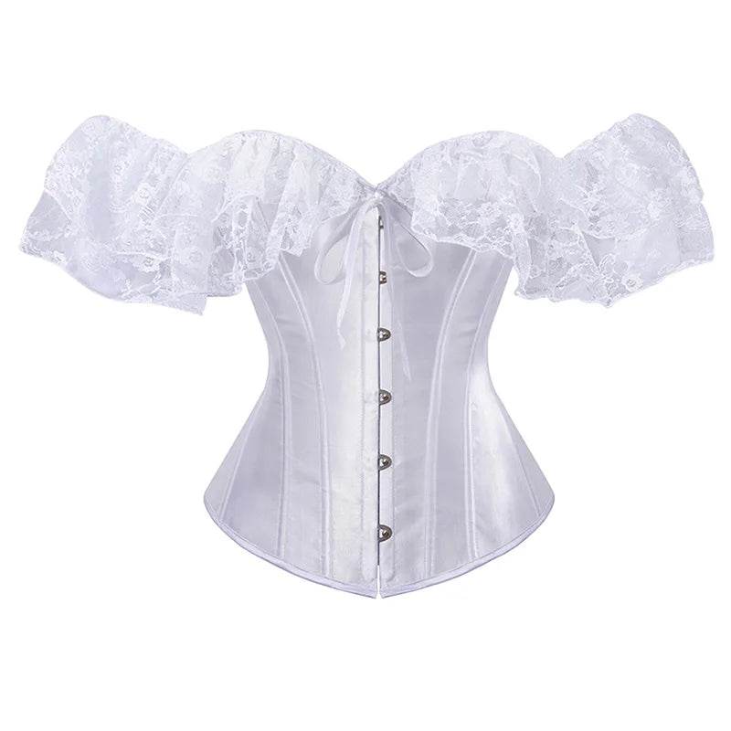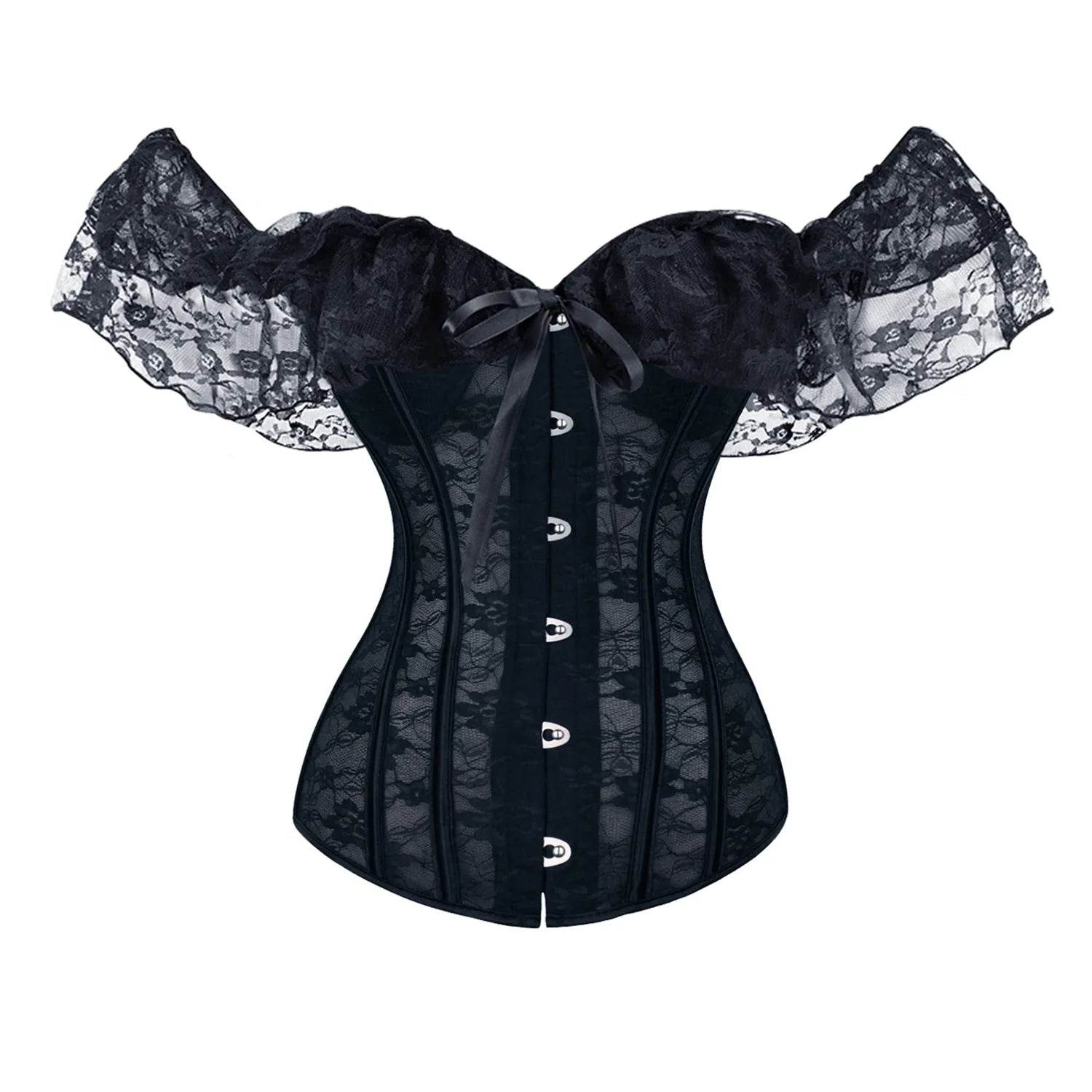 The images showcase the corset's exquisite design, highlighting its lace sleeves and structured bodice. The off-shoulder style adds a touch of elegance, making it suitable for both formal and casual settings. Pair it with a flowing skirt or your favorite jeans for a versatile look that turns heads.
