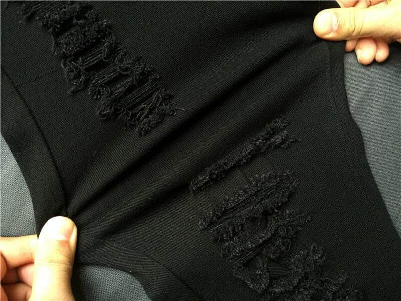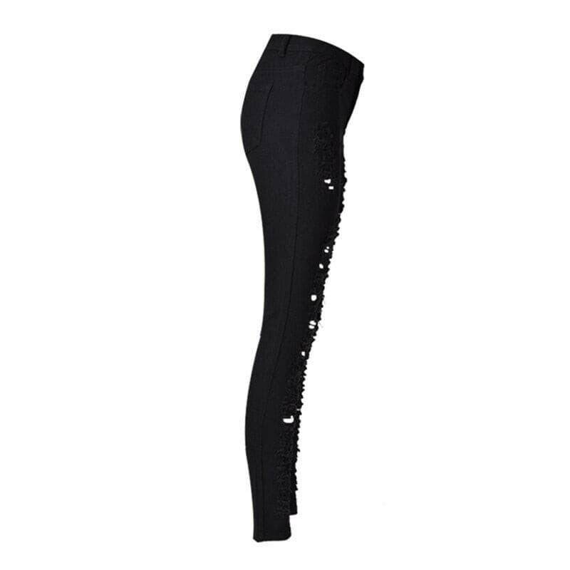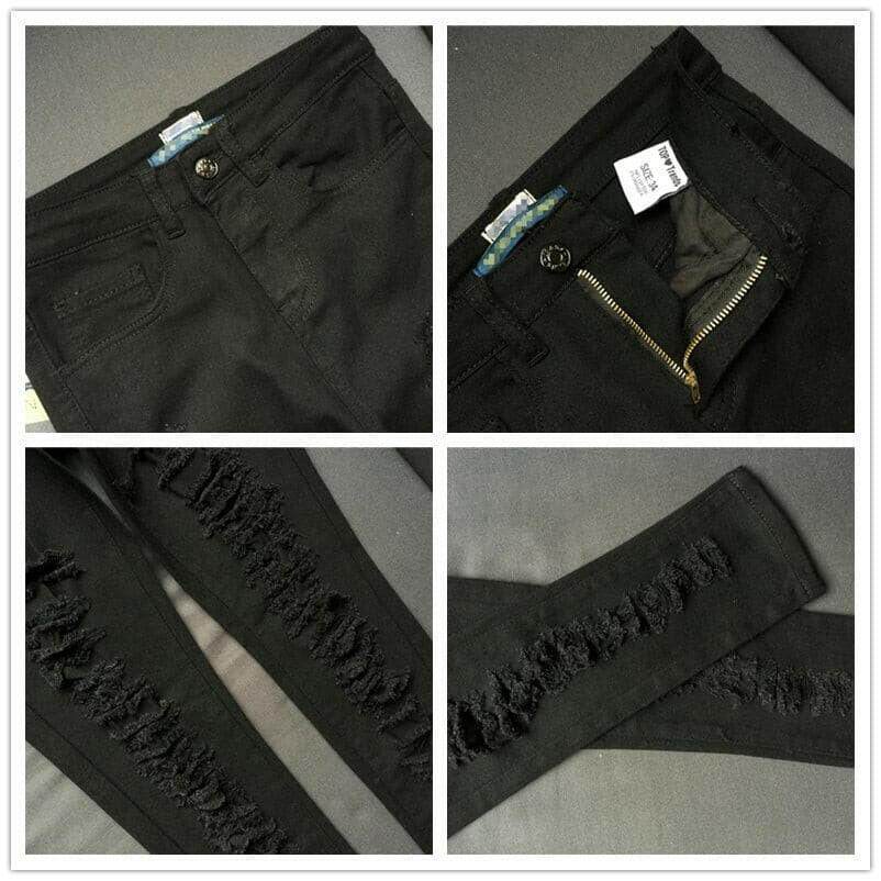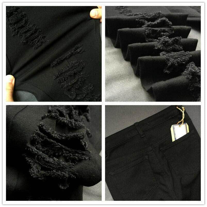 The images showcase the jeans' sleek design and bold ripped patterns, highlighting their ability to transform any outfit into a fashion statement. Paired with a simple top or a trendy blouse, these jeans are versatile enough to suit any occasion, making them a staple in your wardrobe.