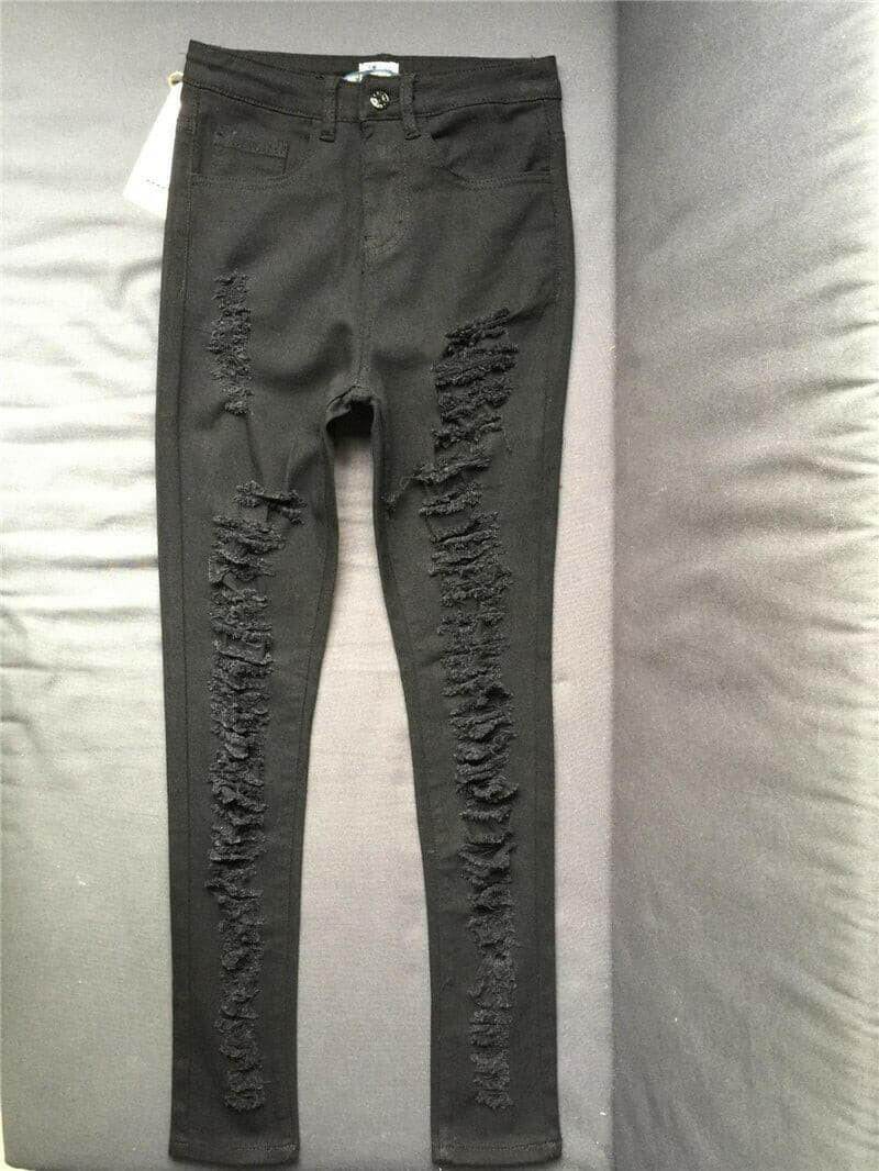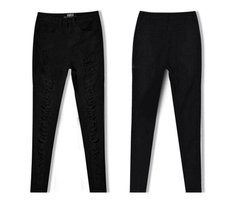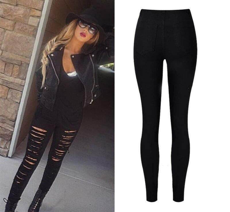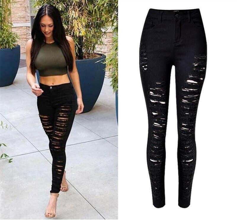 Women Bottoms High Waist Slim Ripped Hole Jeans