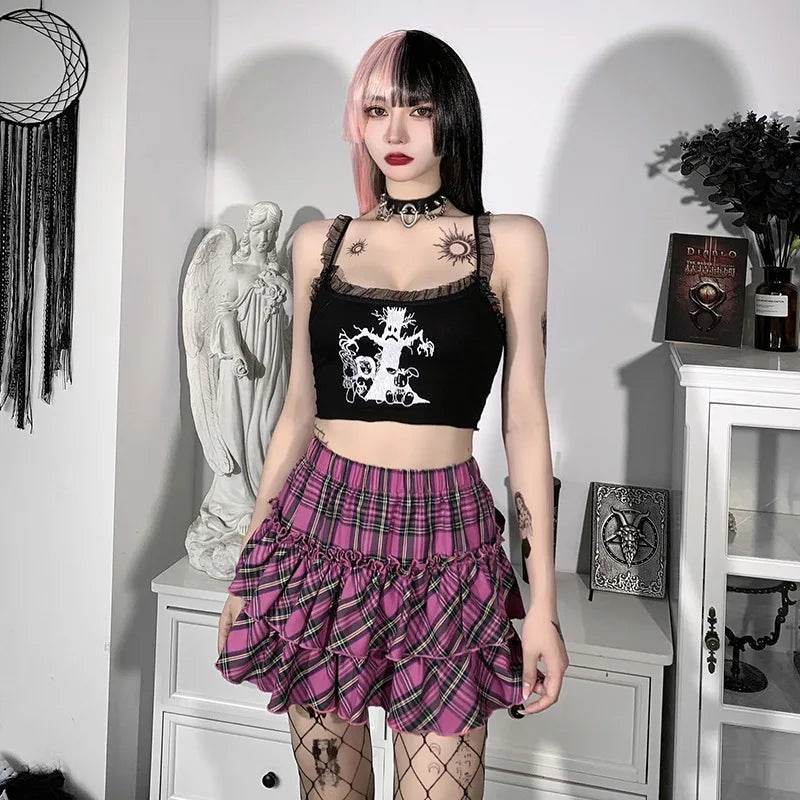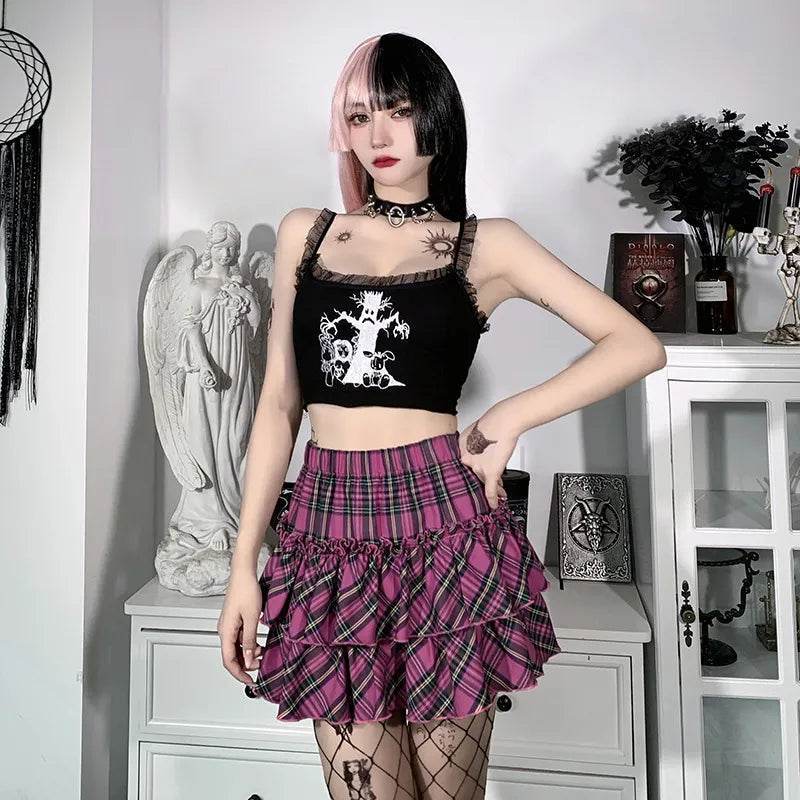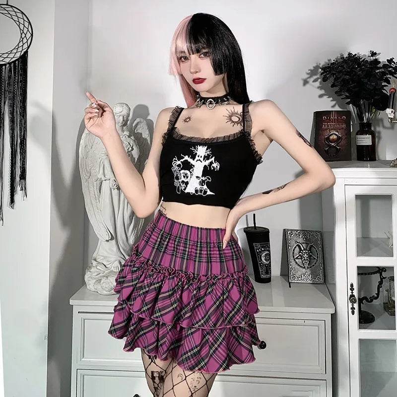 Women High-Waist Gothic Plaid Pink Mini Skirt