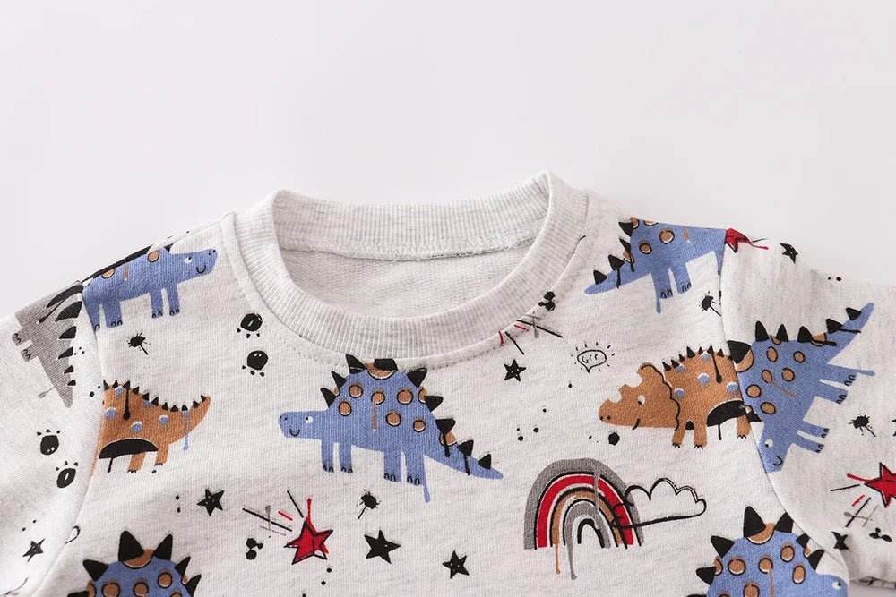 Playful Dinosaur Design: The sweater features a fun and colorful dinosaur pattern that sparks imagination and adventure.