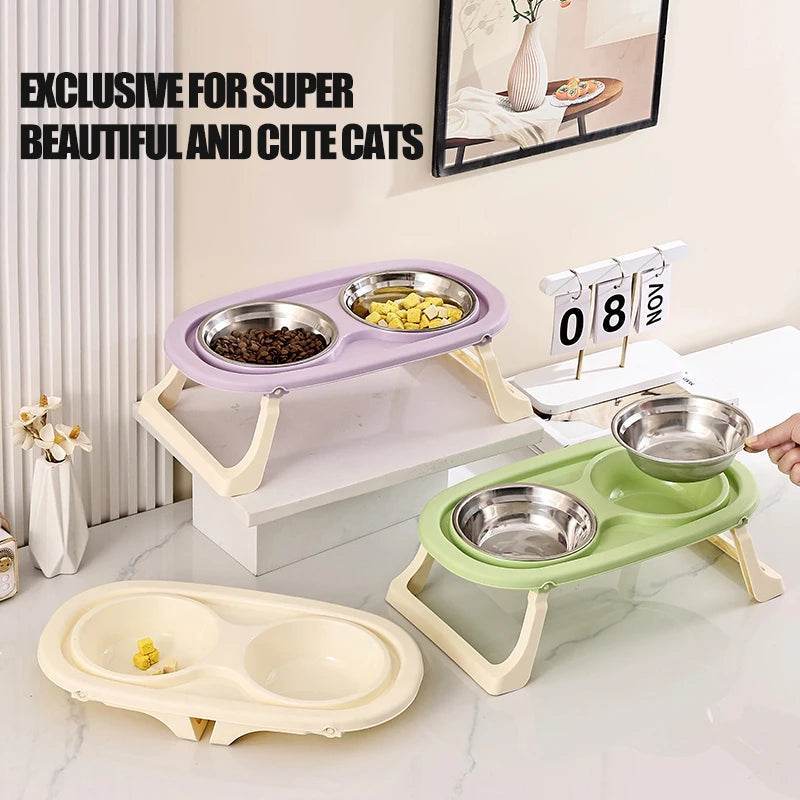 Whether you're hiking, camping, or simply enjoying a day out, the Foldable Stainless Double Cat Pet Bowl is your perfect companion for keeping your pets happy and healthy.
