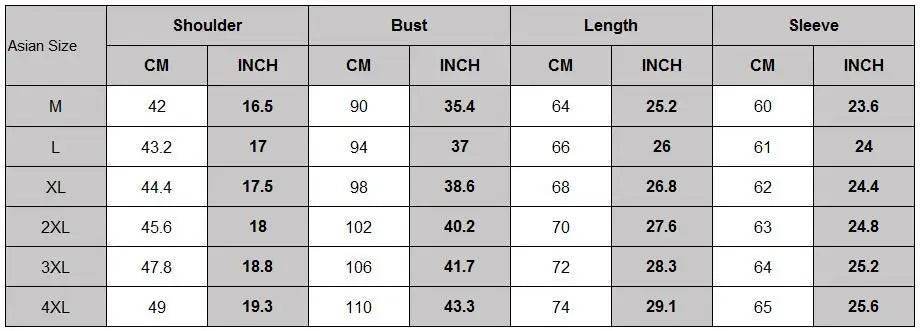 Fit: Tailored to perfection with sizes ranging from Asia M (US XS) to Asia 4XL, ensuring a comfortable fit for everyone.
