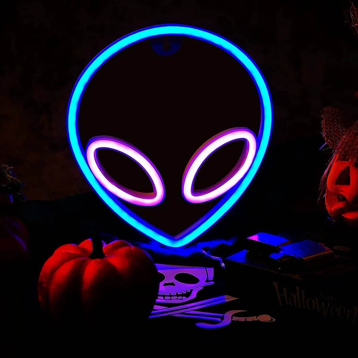 Whether you're decorating a bedroom, game room, or office, this neon sign is the perfect addition. Its playful alien head design is sure to spark conversations and bring a smile to anyone who sees it. Hang it on your wall or place it on a shelf to create a unique ambiance that reflects your style.