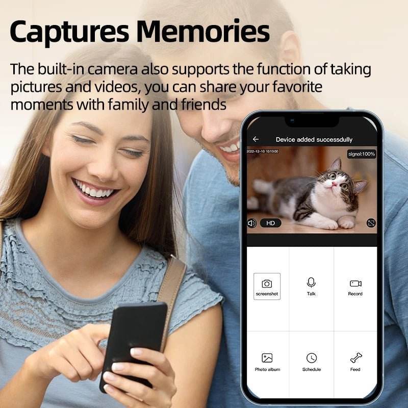 Equipped with a built-in camera, this feeder allows you to interact with your pet anytime through live video and voice. Capture precious moments and share them with family and friends, ensuring you're always connected with your pet, no matter where you are. The sleek design, available in multiple colors, complements any home decor while providing essential pet care.