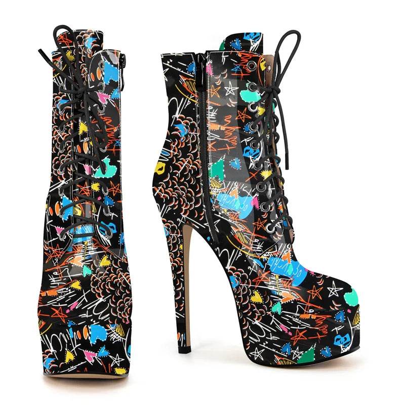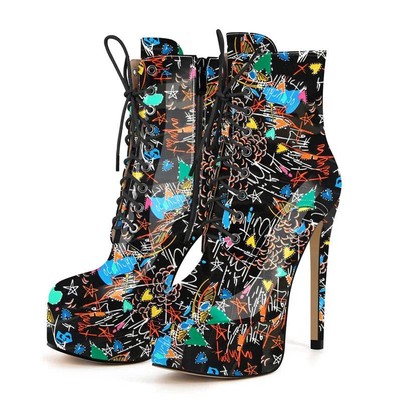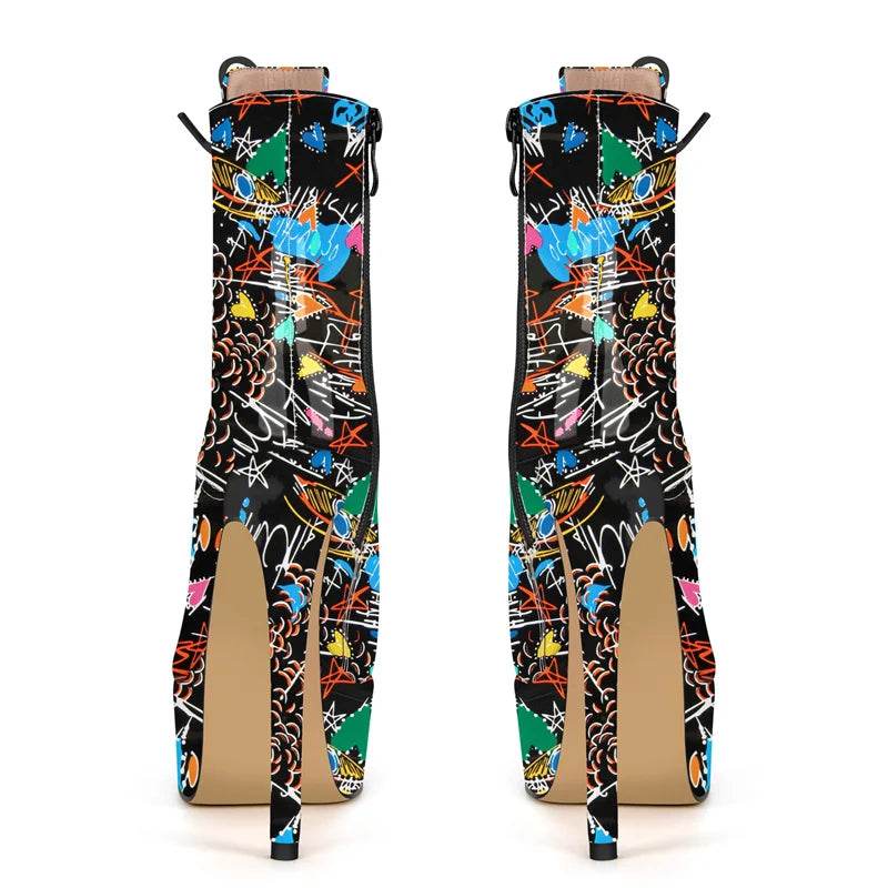 With their eye-catching design, these ankle boots are perfect for fashion-forward individuals who want to make a statement. The vibrant patterns and sleek silhouette make them a standout piece in any collection. Whether you're dressing up for a night out or adding flair to a casual outfit, these boots are your perfect companion.
