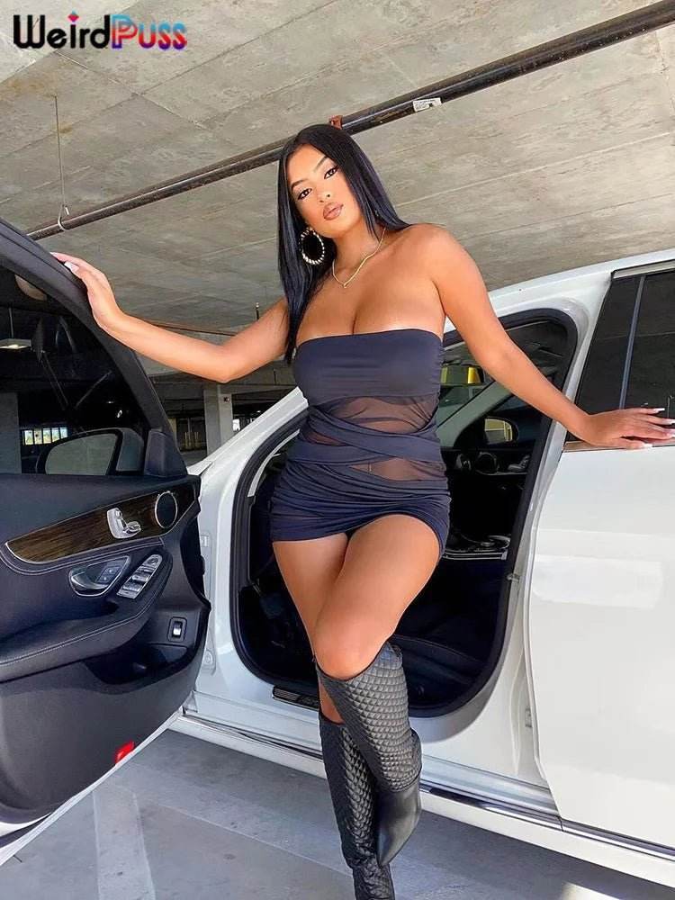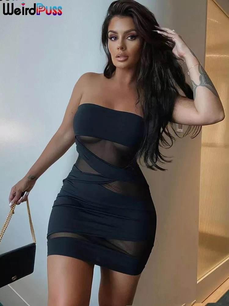 The dress features a unique patchwork design that combines elegance with a touch of daring. The strapless style adds a chic and modern vibe, perfect for clubbing or any social event where you want to stand out. Available in a variety of colors like black, blue, pink, red, and white, paired with black accents, you can choose the perfect shade to match your mood.