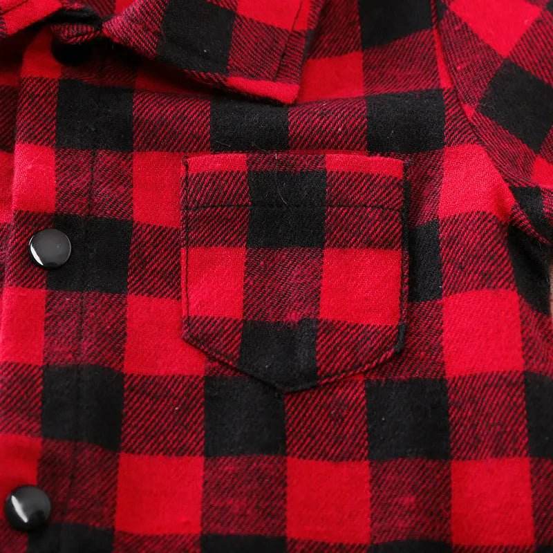The romper features a classic plaid pattern available in vibrant colors like red, blue, black, and green. Its short sleeves and button-up front make it easy to dress your little one, while the soft fabric ensures gentle comfort against their skin. The playful design is sure to make your baby stand out in any setting.