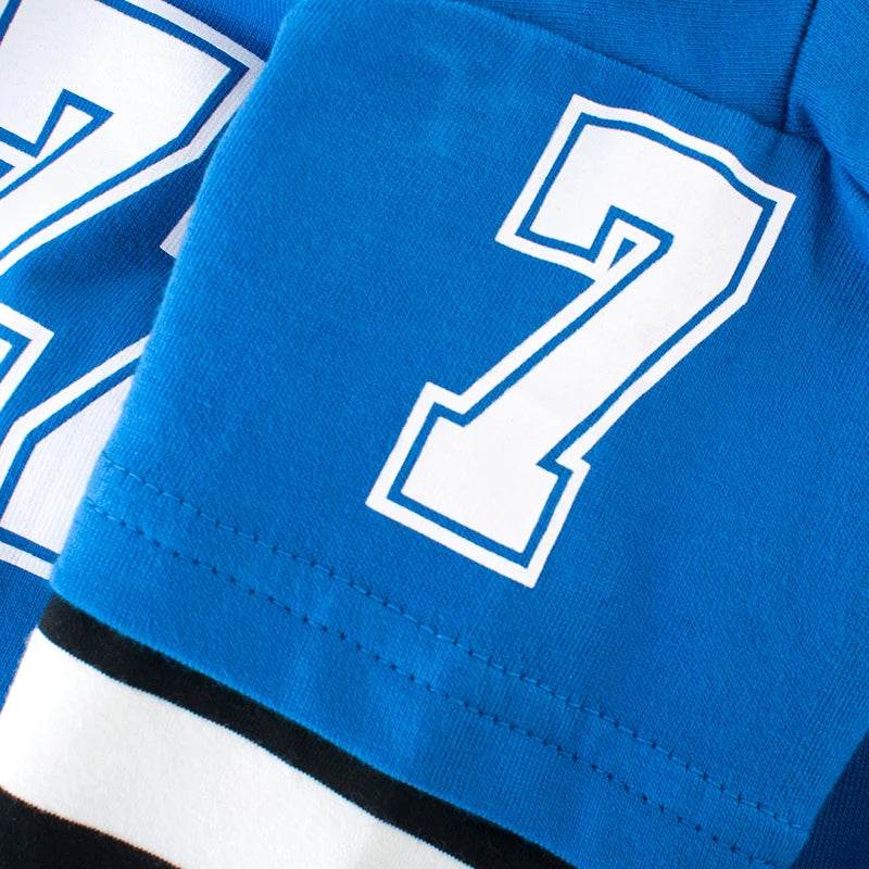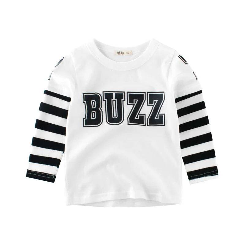 Available in a variety of vibrant colors, these sweatshirts are designed to suit every personality. Choose from sizes ranging from 2T to 9 years, ensuring a perfect fit as your child grows. The bold "BUZZ" lettering and striped sleeves add a sporty flair, making these sweatshirts ideal for both playtime and outings.
