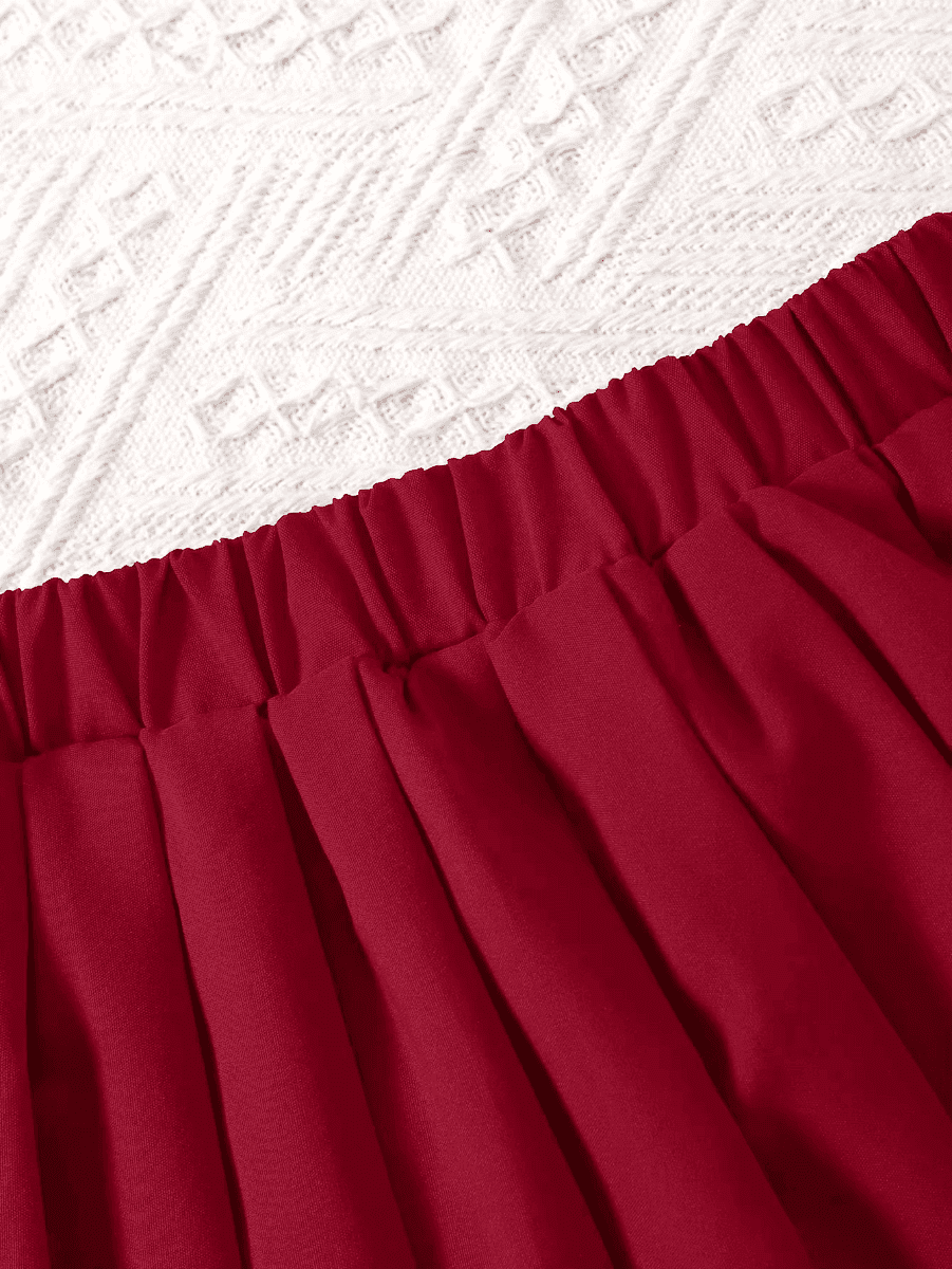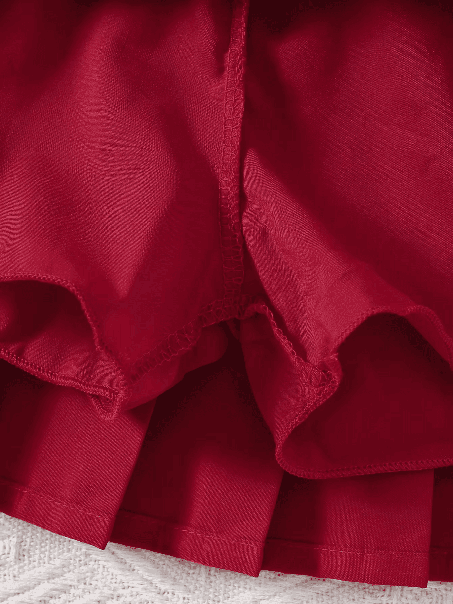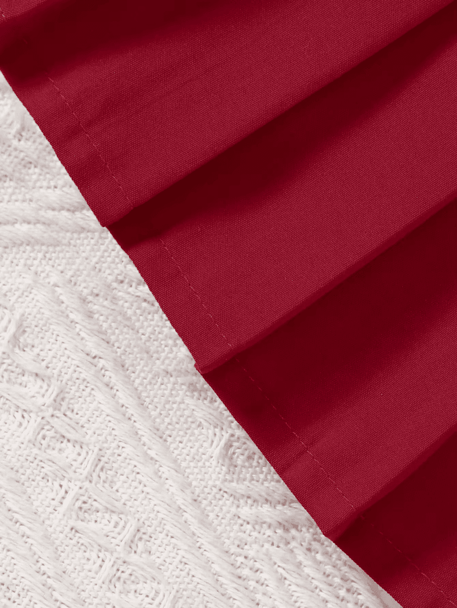 Vibrant Skirt: The pleated skirt comes in a variety of color options, including classic red and white combinations.