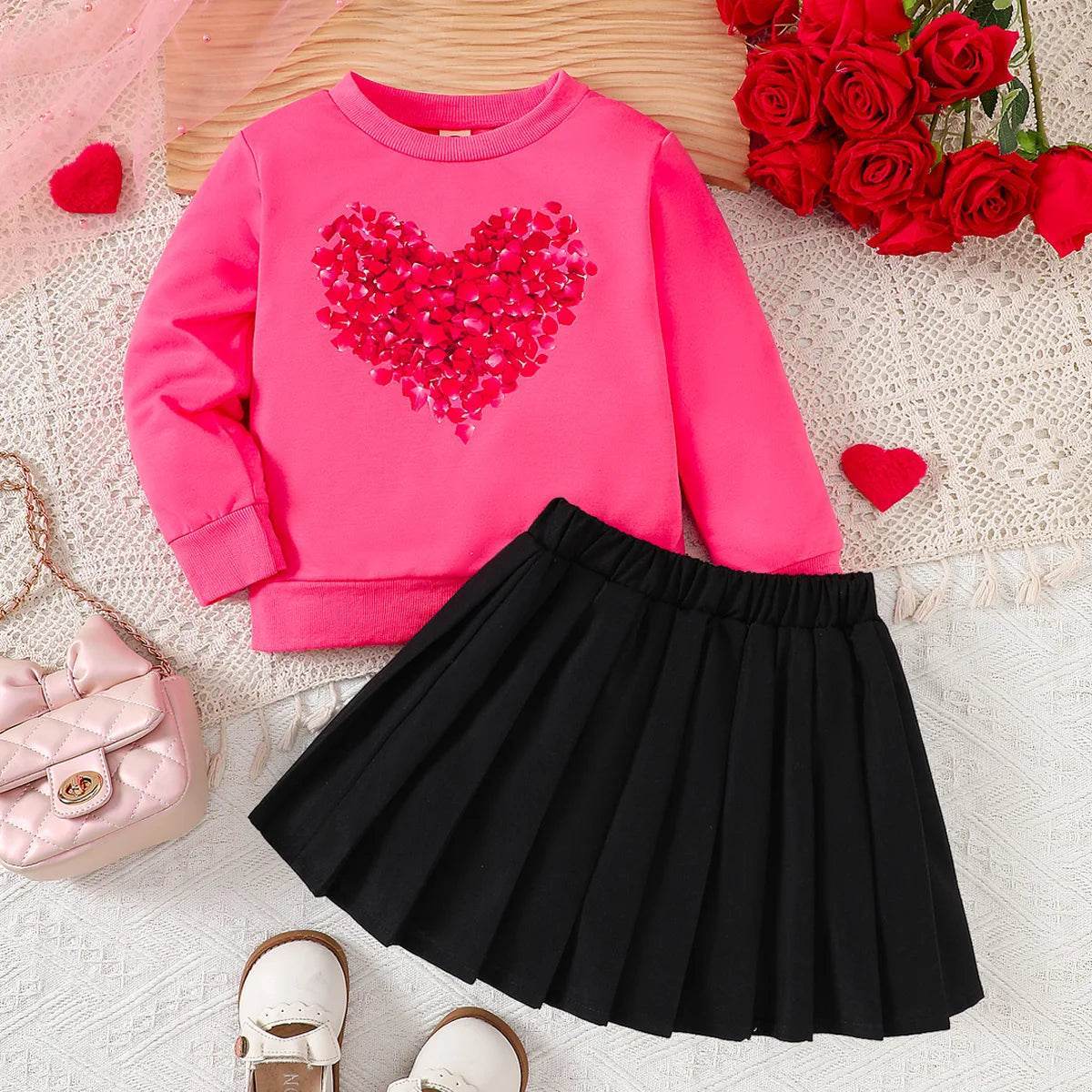 Celebrate love with the Baby Girl Heart Valentine Tennis Skirt Outfit Set, a charming outfit perfect for your little girl's Valentine's Day festivities. This delightful set includes a soft, breathable top adorned with a heart design, paired with a vibrant pleated skirt. It's designed to keep your child comfortable while adding a touch of style to her wardrobe.