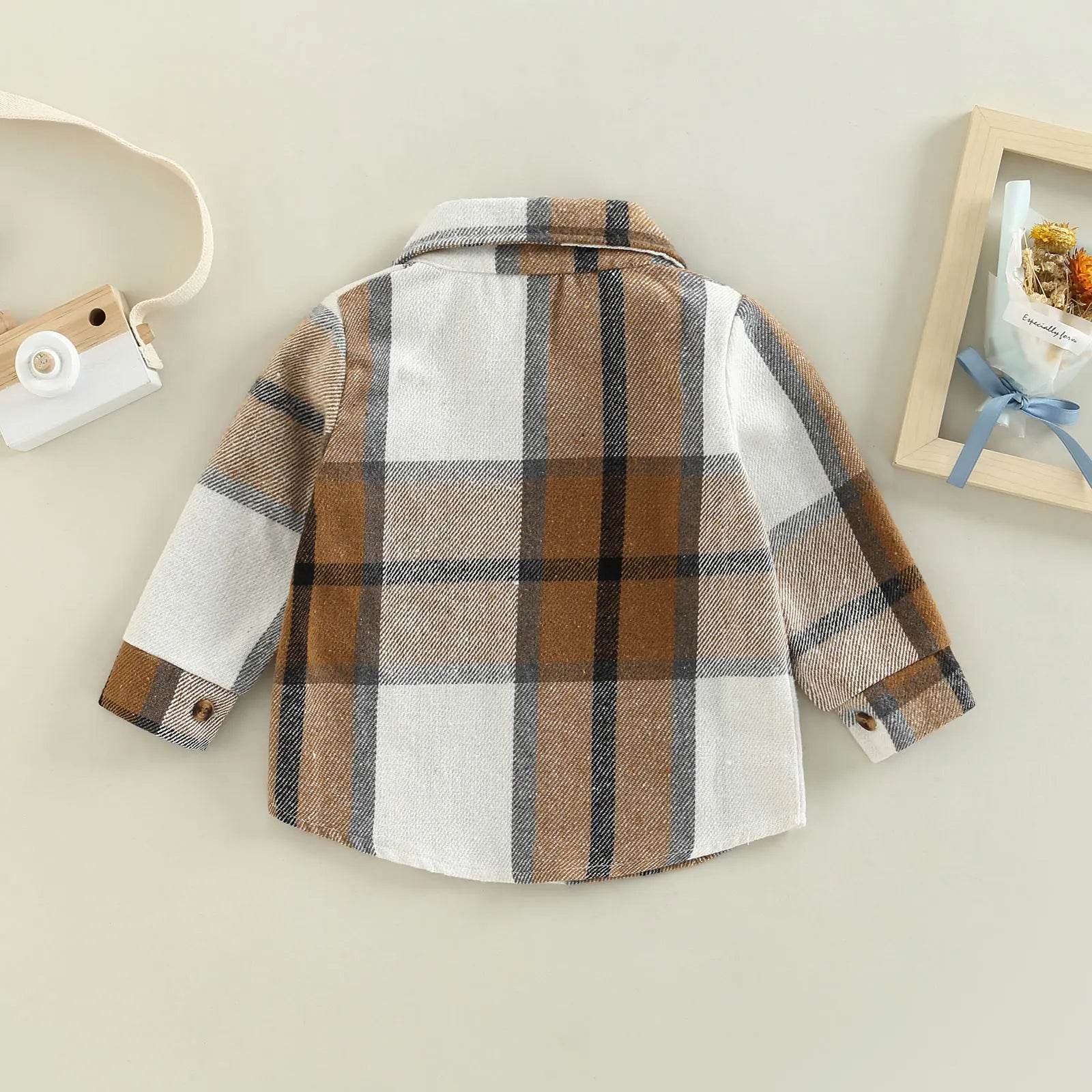 Baby Girl Lapel-Long Plaid Shirt Jacket