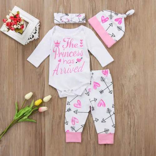 Make your baby girl's wardrobe as special as she is with the Baby Girl Princess Has Arrived Romper Sets. Order now and let your little one shine!