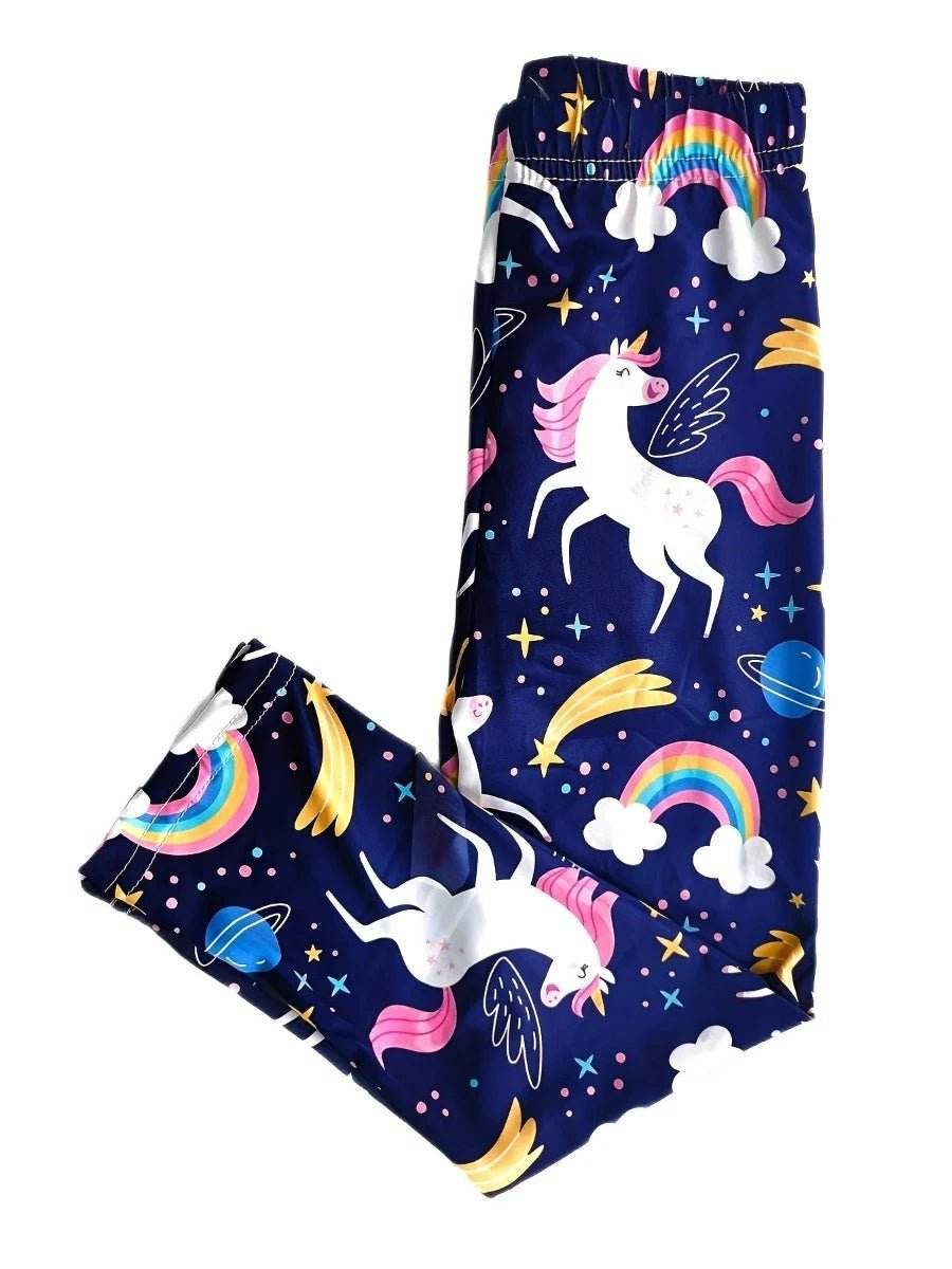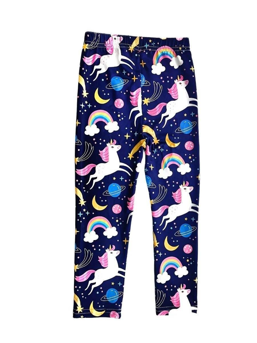 The leggings feature a vibrant 3D unicorn design that captures the imagination. With colors ranging from playful pinks to deep navy, each pair is a burst of joy and creativity. The unicorns prance through a magical landscape of rainbows and stars, bringing a touch of fantasy to your child's wardrobe.