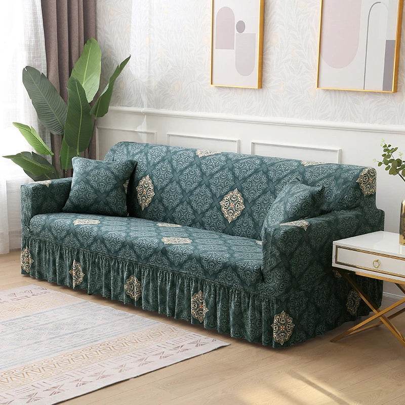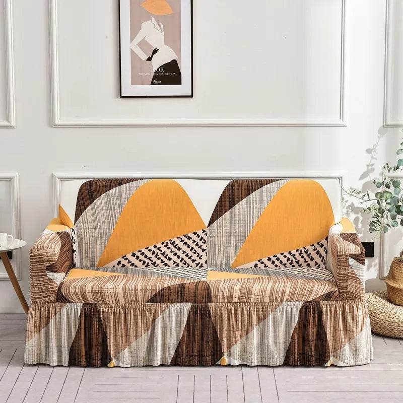 Imagine your living room with a fresh, new look. The images showcase the slipcover's elegant design, highlighting its ability to transform any sofa into a centerpiece. The geometric pattern adds a contemporary flair, while the elastic fit ensures it stays in place, even during lively gatherings.