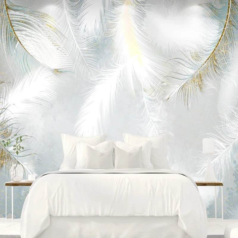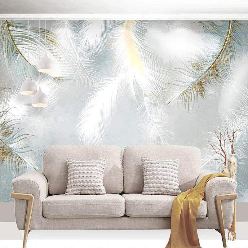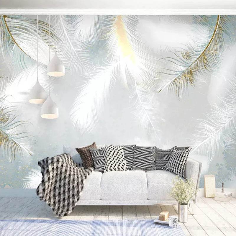 Custom 3D White Feather Mural Wallpaper