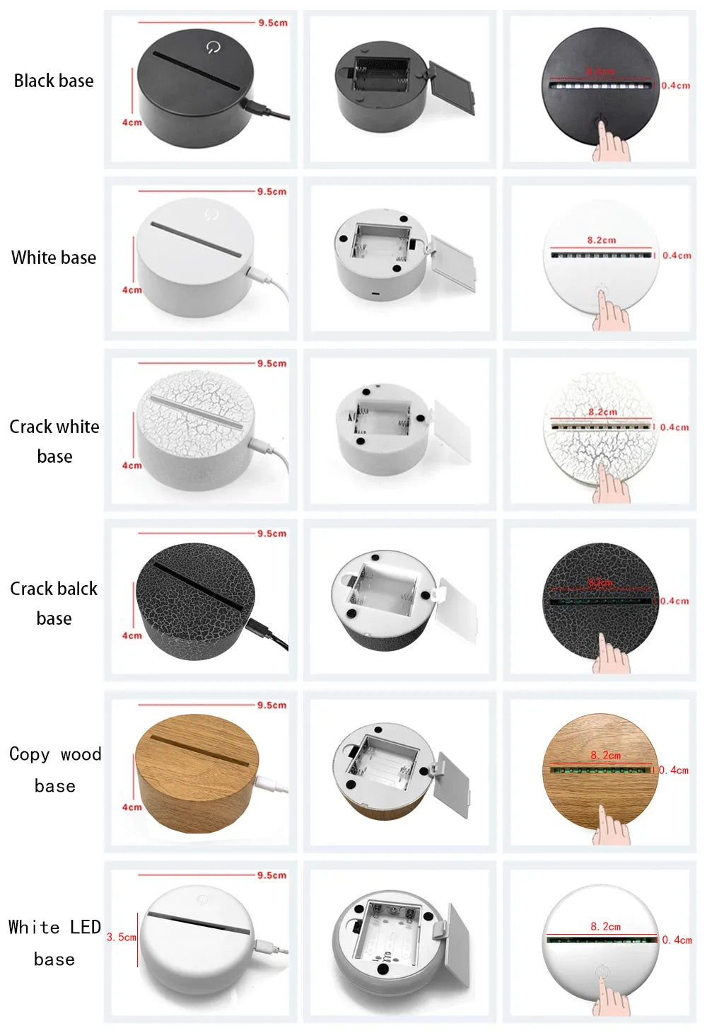 Base Options: Available in White LED Base, Copy Wood Base, Crack Black Base, Black Base, and Crack White Base.