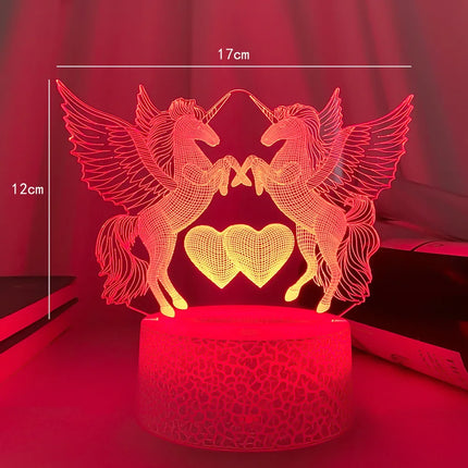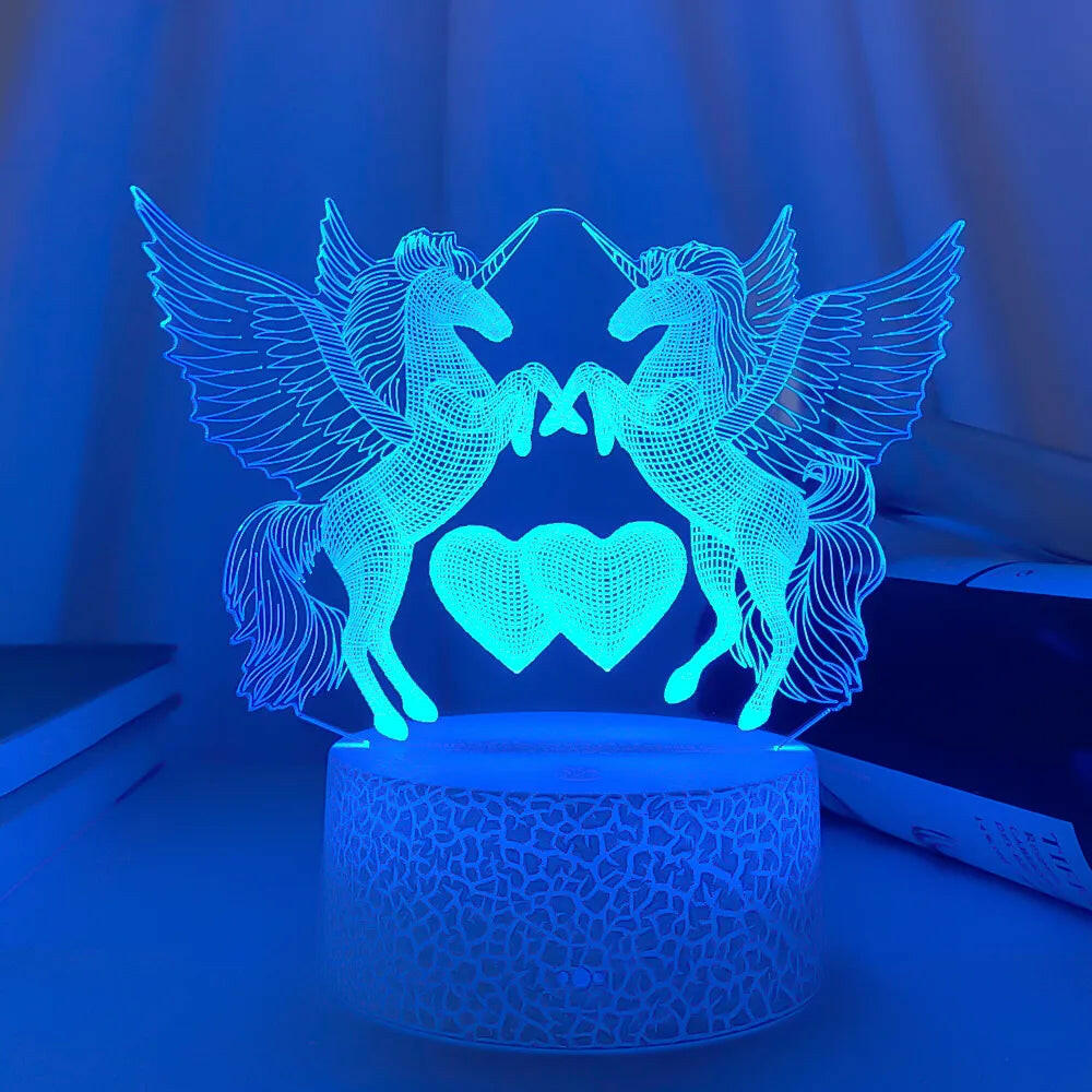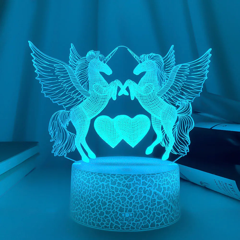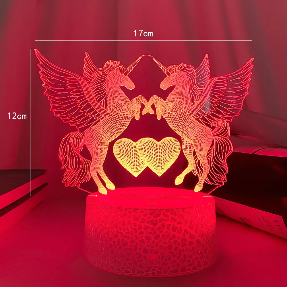 Introducing the enchanting Double Horse-Unicorn 3D LED Night Light by Sololandor! This mesmerizing night light is perfect for sparking imagination and adding a touch of magic to any room. Designed with intricate details, the double horse-unicorn figures create a captivating 3D effect that will delight both kids and adults alike.