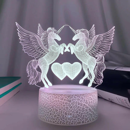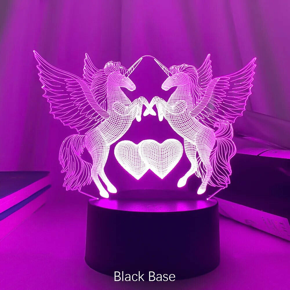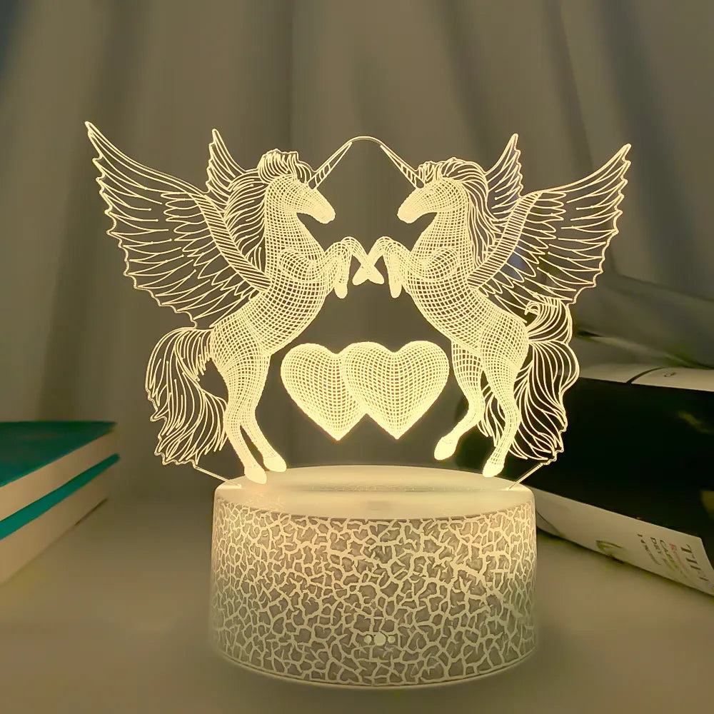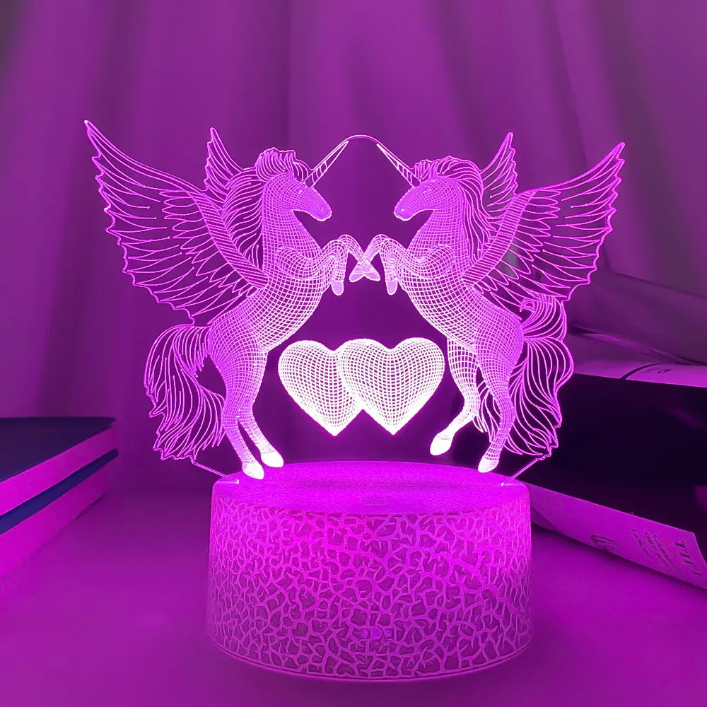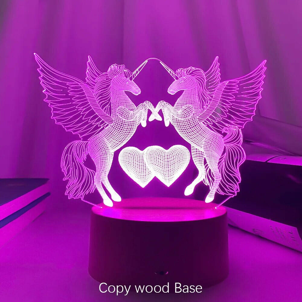 Introducing the enchanting Double Horse-Unicorn 3D LED Night Light by Sololandor! This mesmerizing night light is perfect for sparking imagination and adding a touch of magic to any room. Designed with intricate details, the double horse-unicorn figures create a captivating 3D effect that will delight both kids and adults alike.
