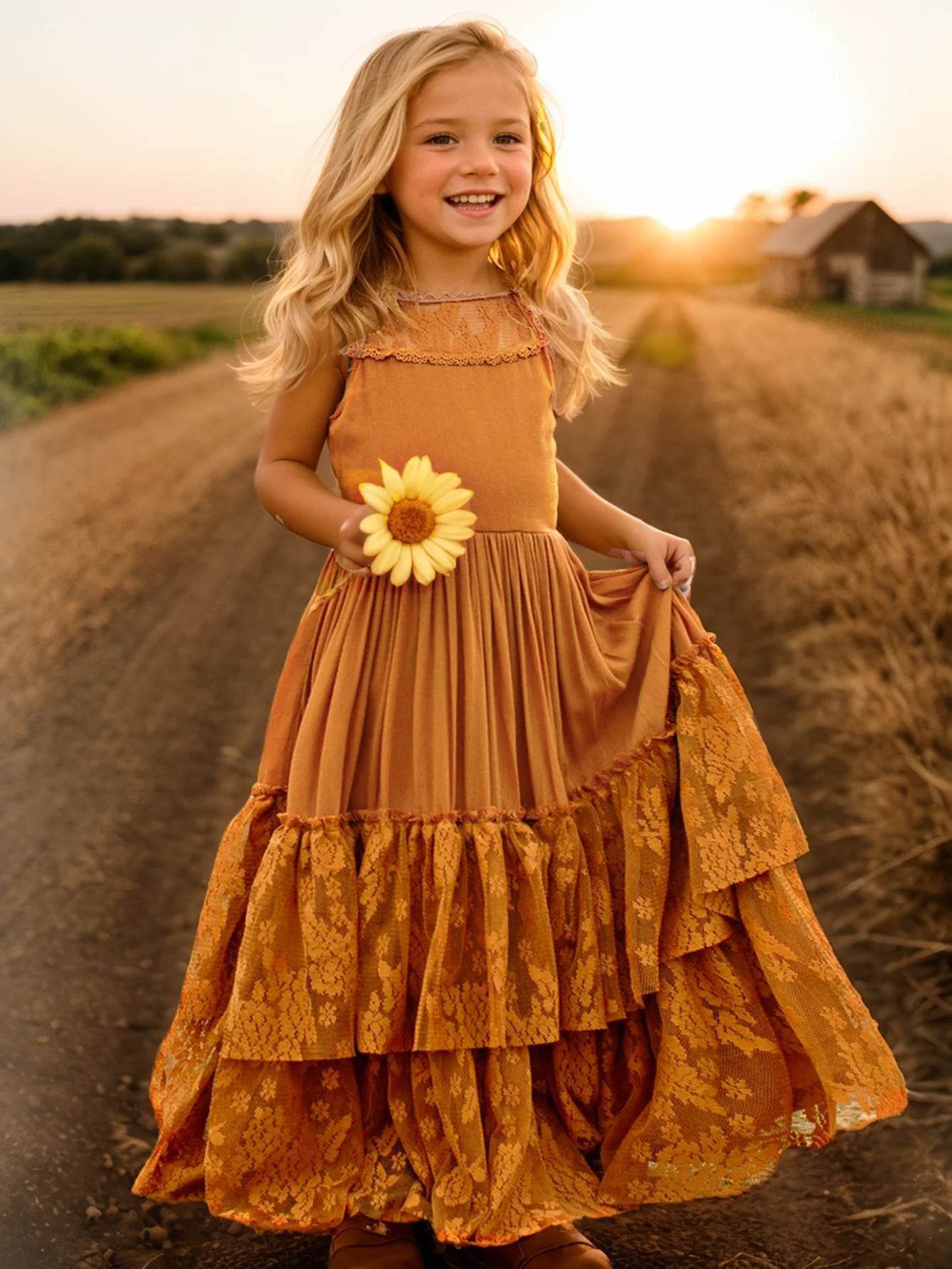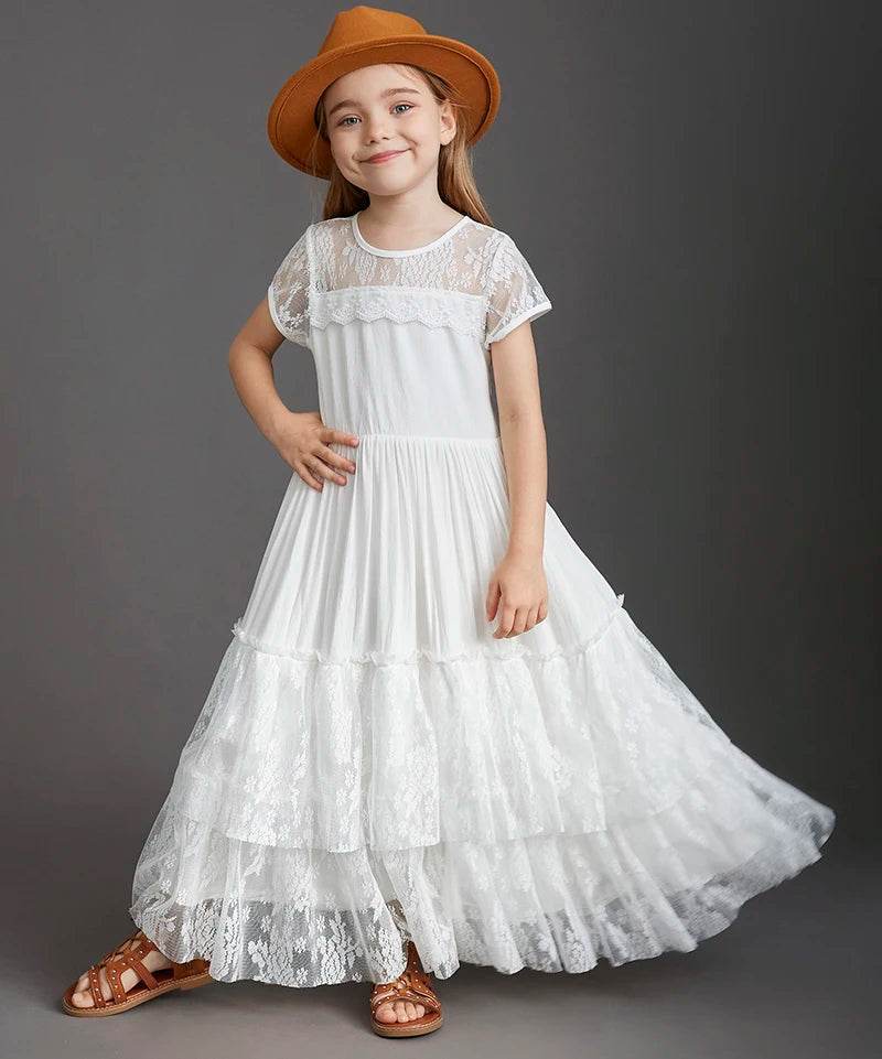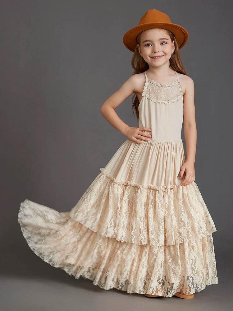 Make your child's special moments even more memorable with the Girl Lace Backless Chiffon Maxi Dress. It's more than just a dress; it's a celebration of style and grace.
