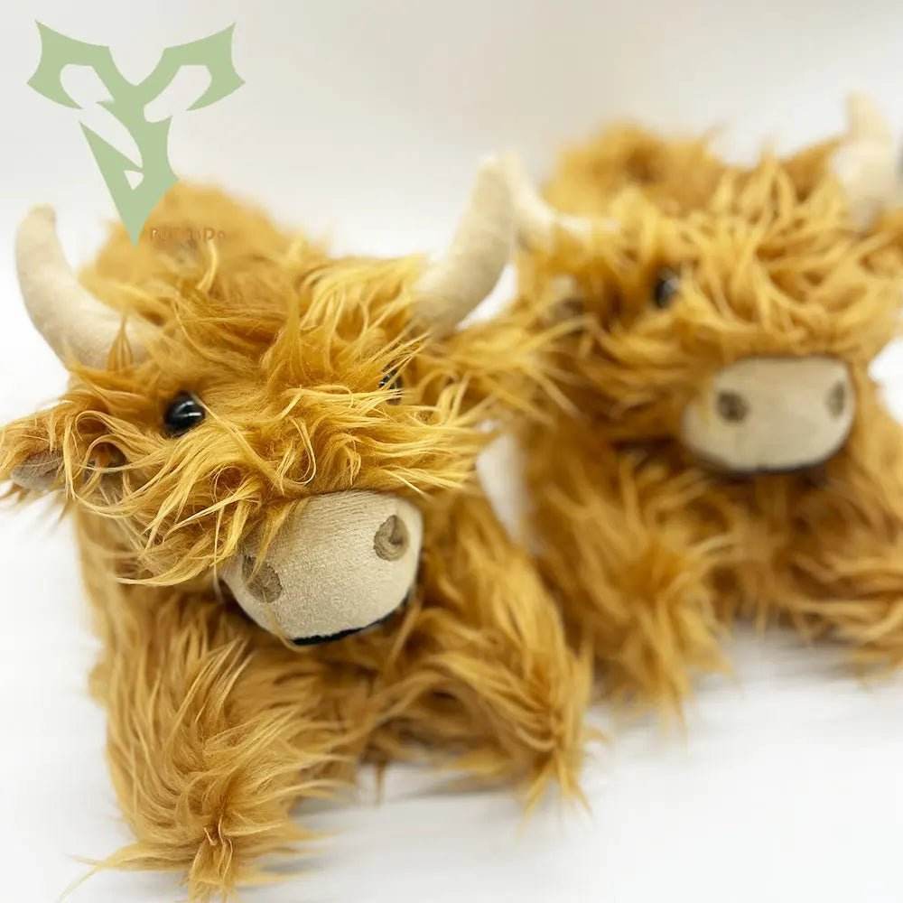 Cozy and Fun: Kids Highland Scottish Cattle Plush Slippers Kids Footwear