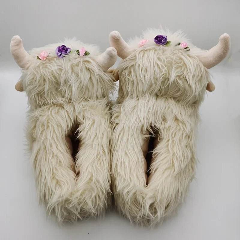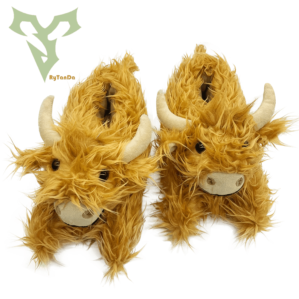 Rytanda Highland Scottish Cattle Plush Slippers Kids Footwear