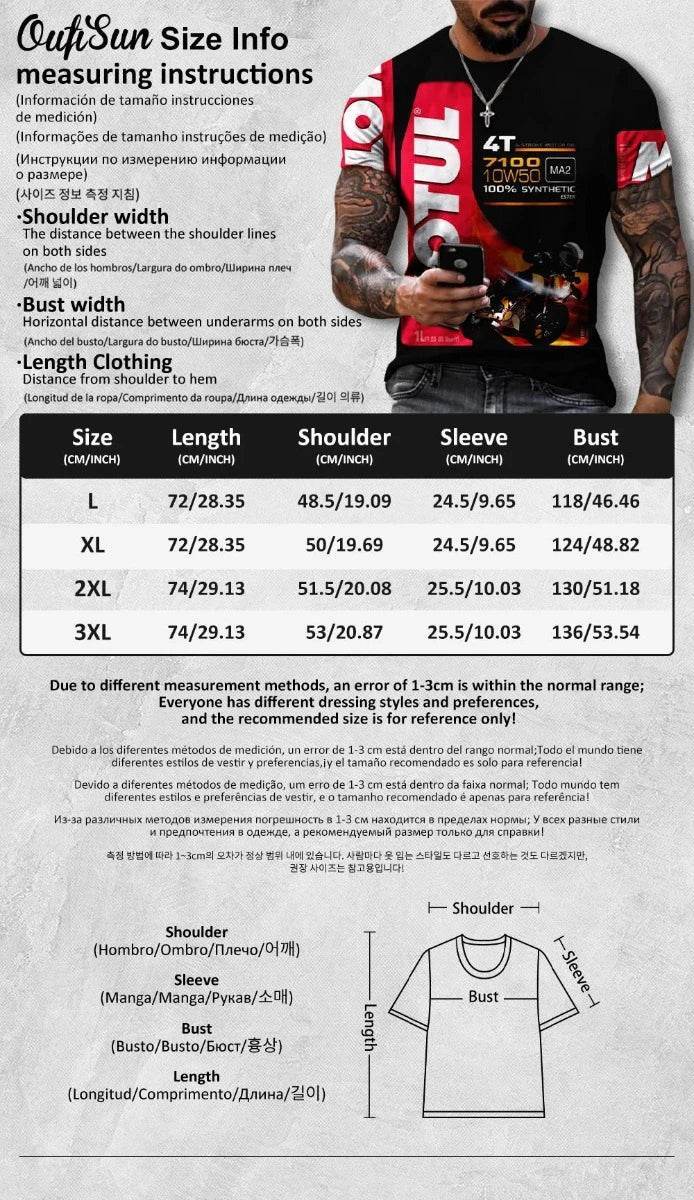 Available in sizes ranging from L to 3XL, this tee ensures a perfect fit for everyone. The detailed size chart helps you find the right size, ensuring you look and feel your best. Pair it with jeans or shorts for a relaxed, stylish look.