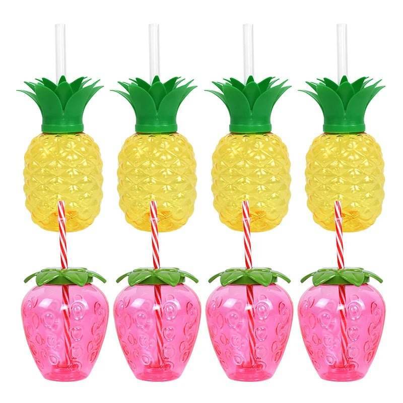 Each set includes eight cups featuring playful pineapple and strawberry shapes. The bright yellow pineapples and cheerful pink strawberries are sure to catch everyone's eye, making them a hit at any event. Whether it's a birthday party, picnic, or summer barbecue, these cups add a festive flair that guests of all ages will love.