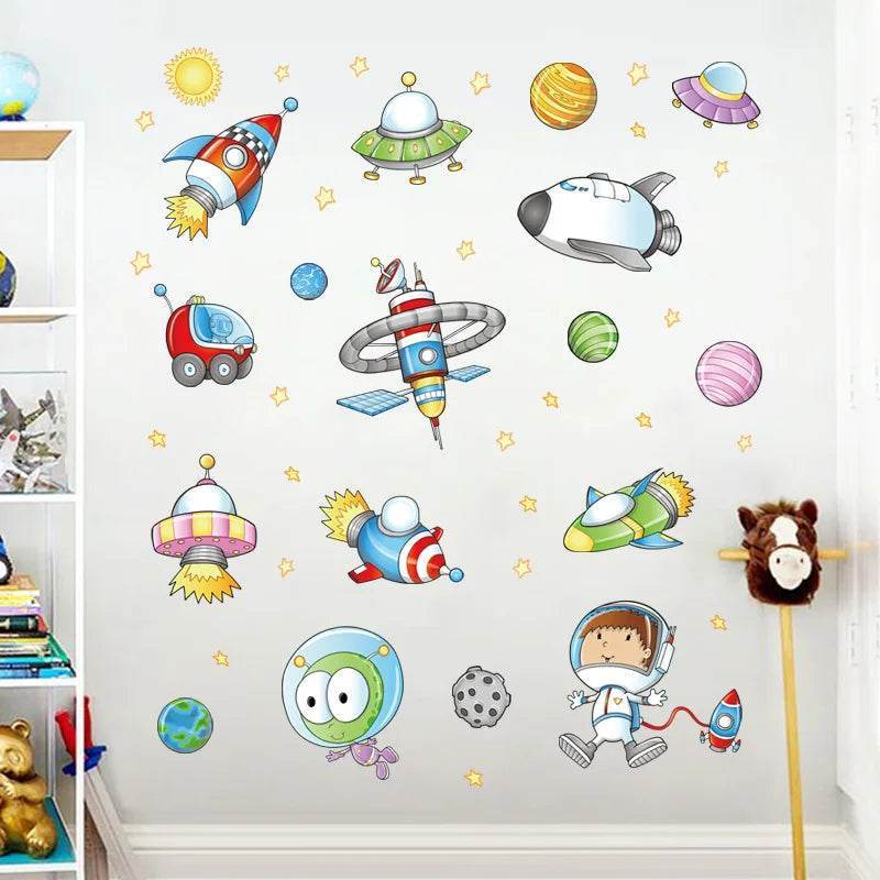 Transform your child's room into a cosmic playground with the Space Astronaut Cartoon 3D Wall Sticker. This vibrant and playful sticker set is perfect for sparking curiosity and creativity in young minds. Featuring colorful planets, rockets, and a friendly astronaut, this wall decor invites your little one to explore the wonders of space right from their bedroom.