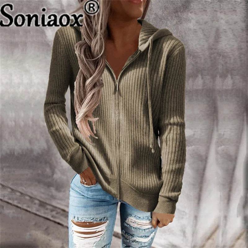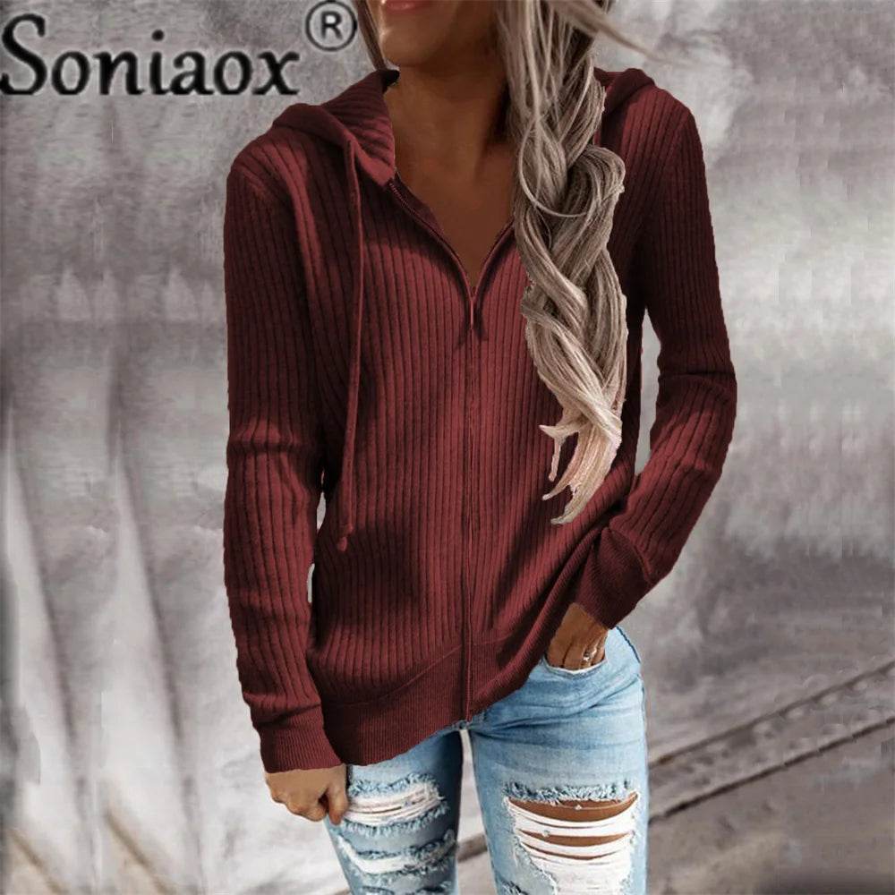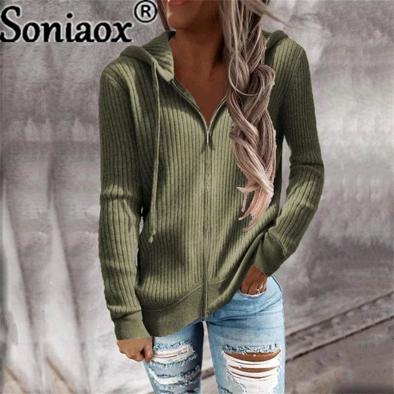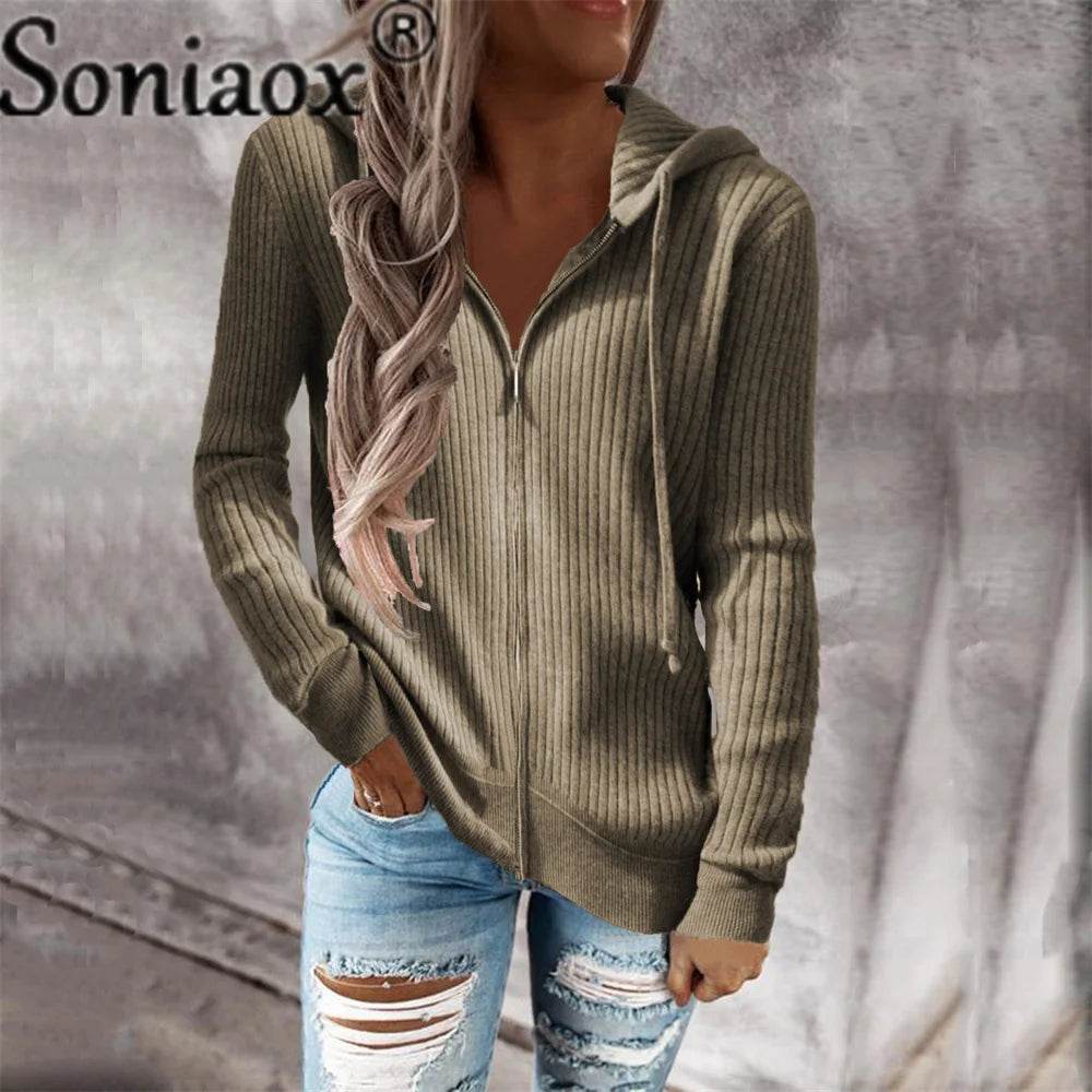 Introducing the Women Autumn Zip Solid Cardigan Hoodies by Soniaox, perfect for those crisp fall days. Designed for both comfort and style, these hoodies feature a convenient zip closure and a sleek, solid color design. Whether you're heading out for a casual day or lounging at home, this hoodie is your go-to choice.
