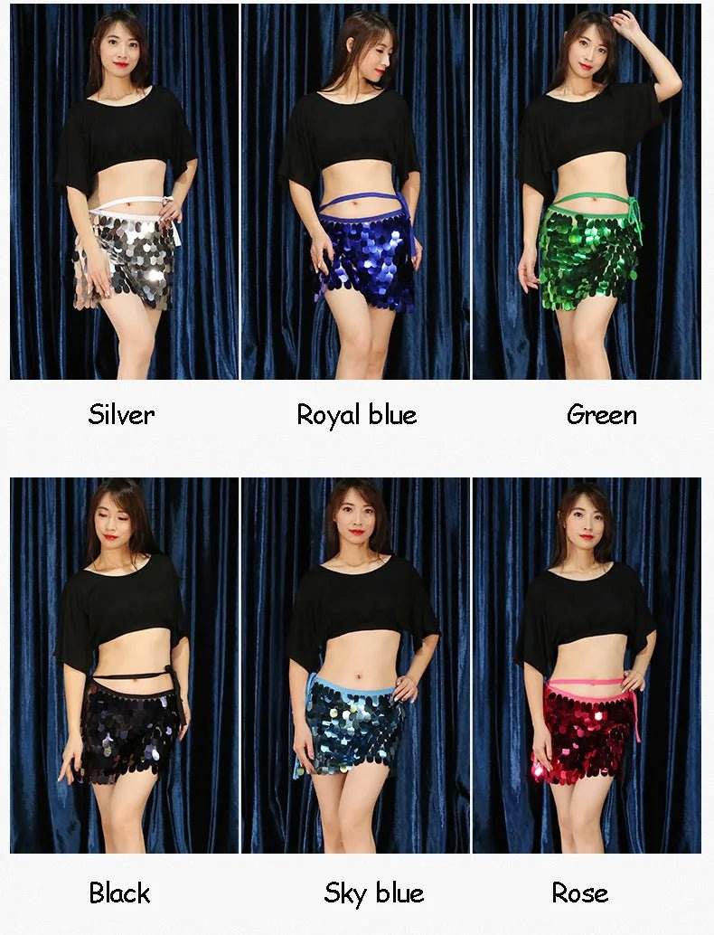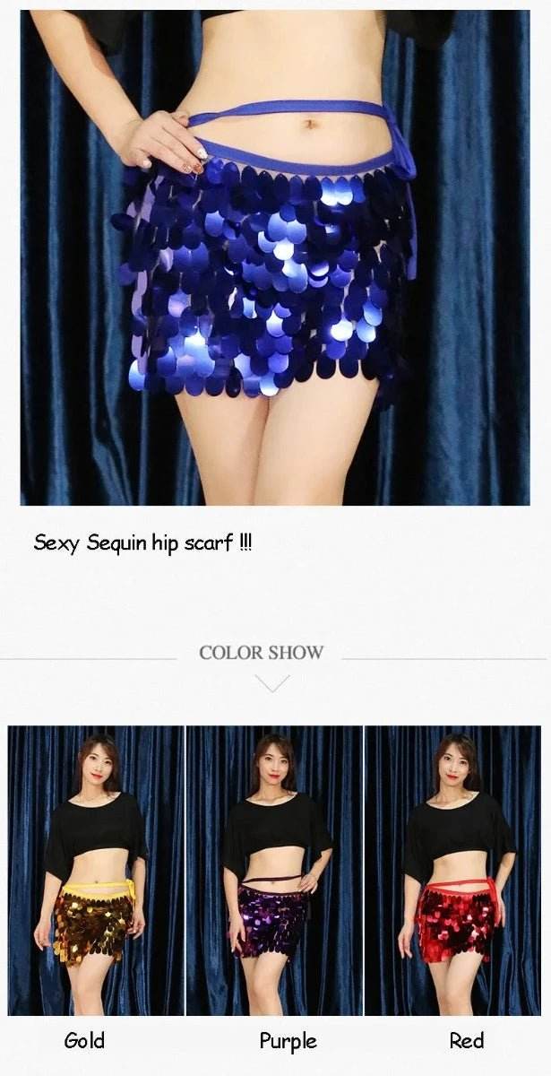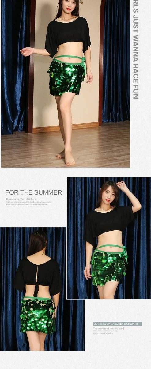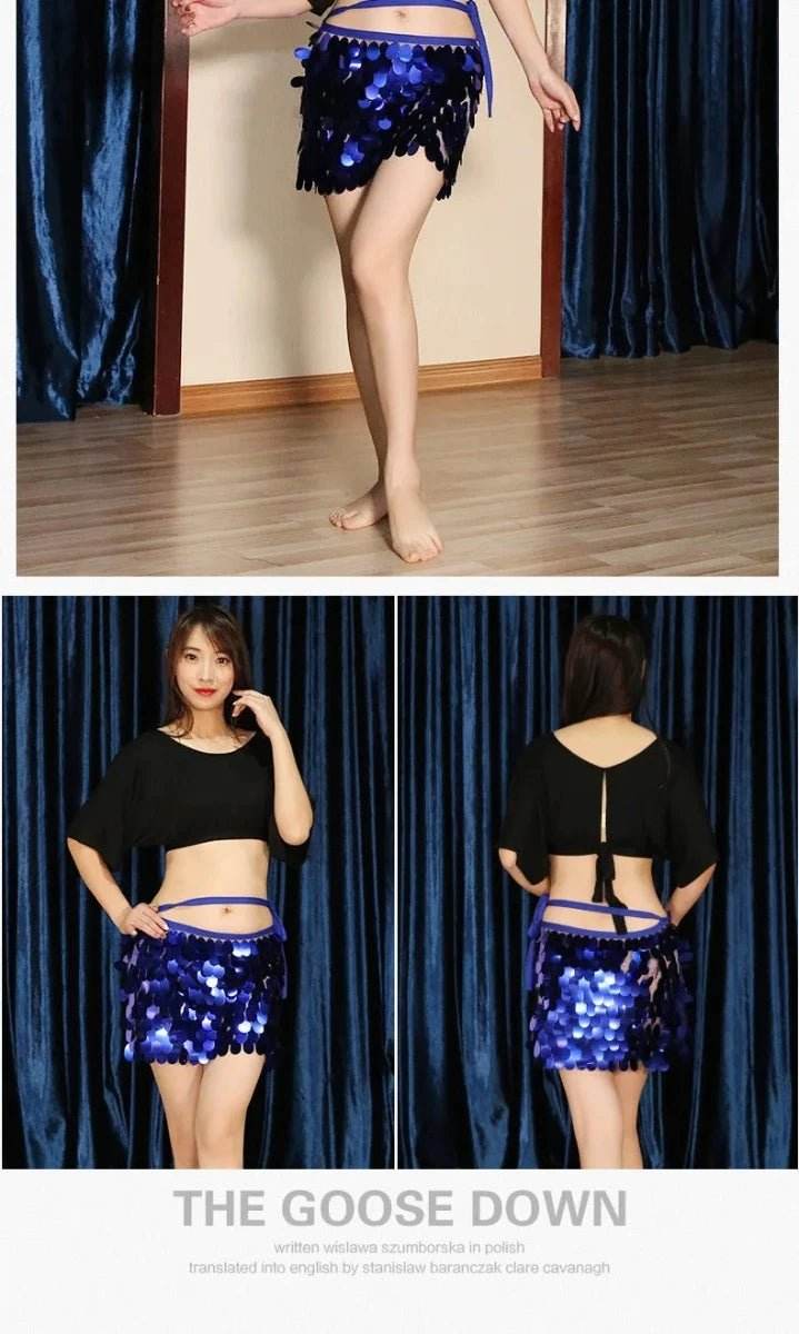 Available in nine vibrant colors including Black, Silver, Gold, Rose, Purple, Green, Red, Royal Blue, and Sky Blue, there's a shade for every mood and occasion. The free-size design ensures a comfortable fit for all, with the hip scarf skirt measuring approximately 210cm including the bandage. Dance with confidence and style!
