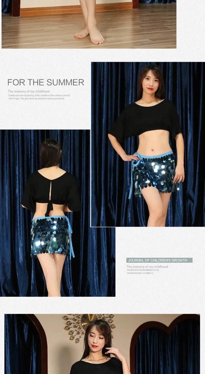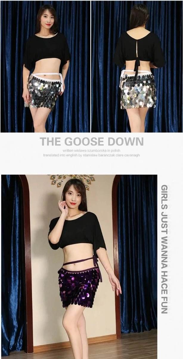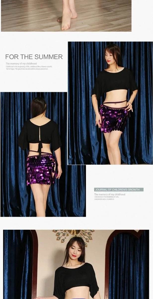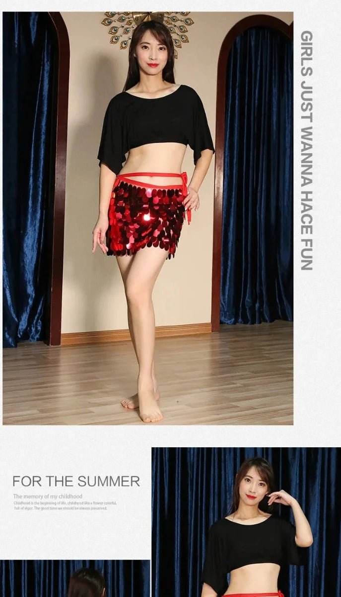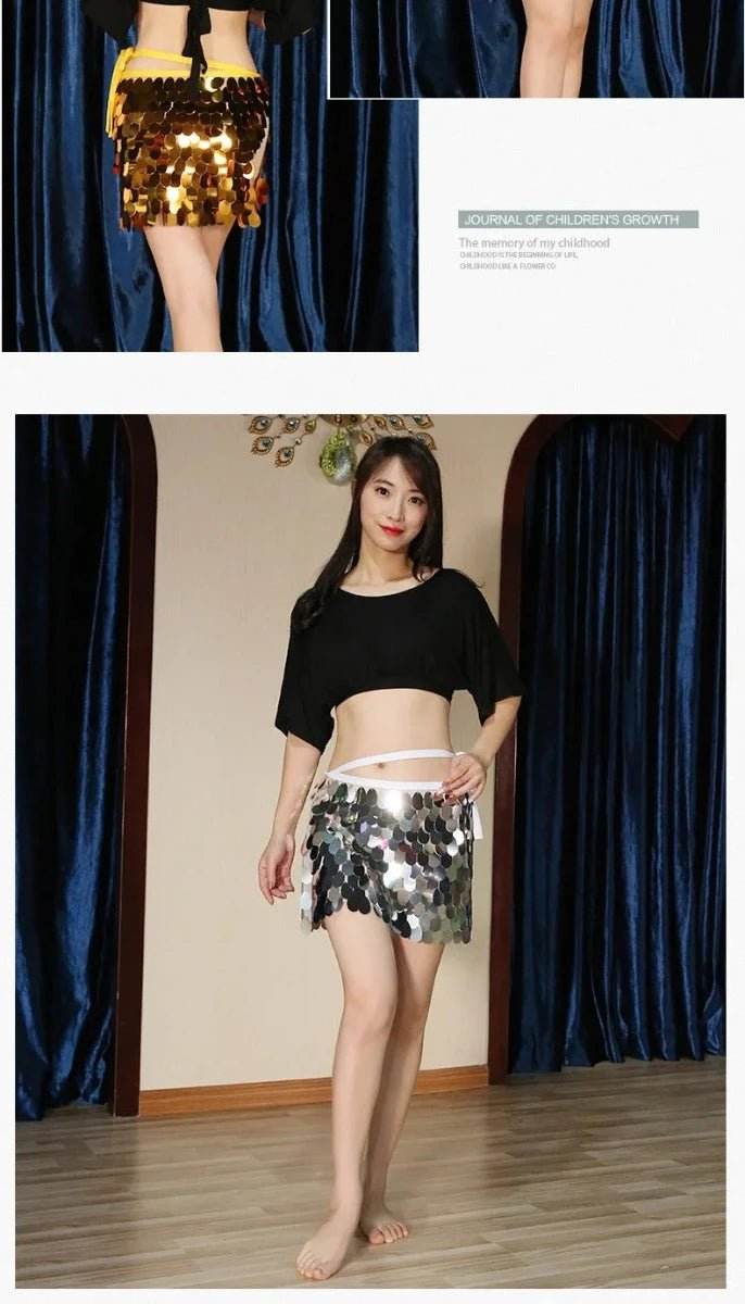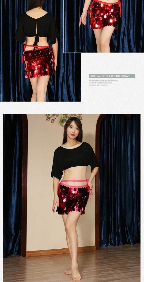 Unleash your inner dancer with the Women Belly Dance 2pc Sequin Costume Set by Vila&Yomi. This stunning set is designed for those who love to move and sparkle. Featuring a chic short-style top and a dazzling hip scarf skirt, this costume is perfect for belly dancing, themed parties, or just having fun!