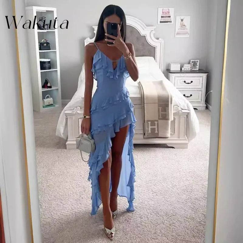Whether you're attending a cocktail party, a wedding, or a formal dinner, this dress ensures you stand out in style. The chiffon material offers a graceful flow, making every movement look effortlessly elegant. Available in a beautiful Sky Blue color, it’s perfect for any season.