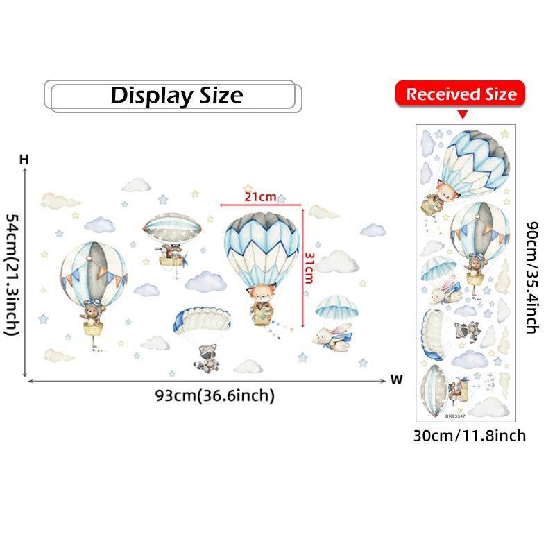 Imagine your nursery walls coming to life with adorable hot air balloons floating among fluffy clouds. Each balloon carries a cute animal friend, adding a touch of magic and adventure to your child's room. The soft watercolor hues blend seamlessly with any decor style, from modern minimalist to Nordic European themes.