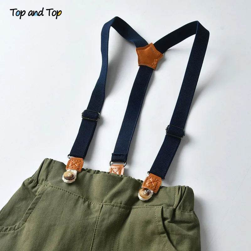 With sizes ranging from 3 months to 6 years, including options like 6T, 3M, and 5T, you can find the perfect fit for your growing child. The soft fabric ensures comfort, while the adjustable suspenders provide a snug fit, allowing your little gentleman to move freely and comfortably.