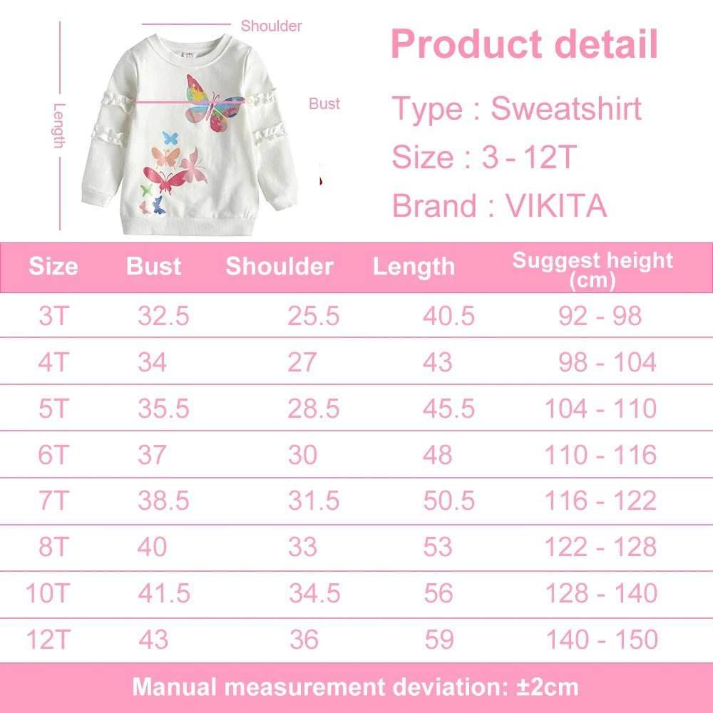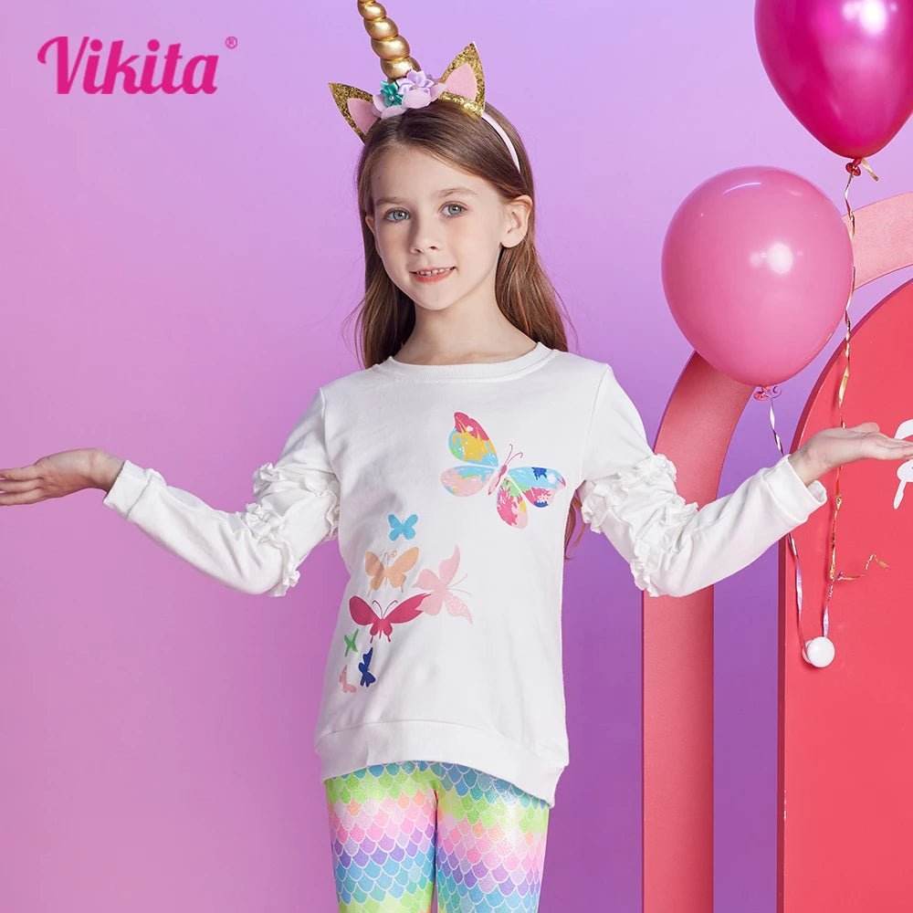 Choose the perfect fit for your child and let them enjoy the playful elegance of VIKITA's Butterfly Spring Casual Tops.