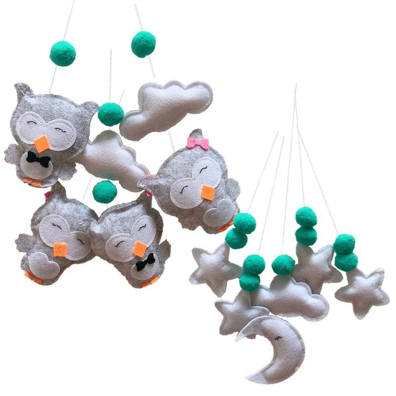 • Engaging Design: The mobile features a delightful array of stars, clouds, and playful characters like astronauts and owls, all in vibrant colors. These elements gently sway, providing visual stimulation and entertainment.