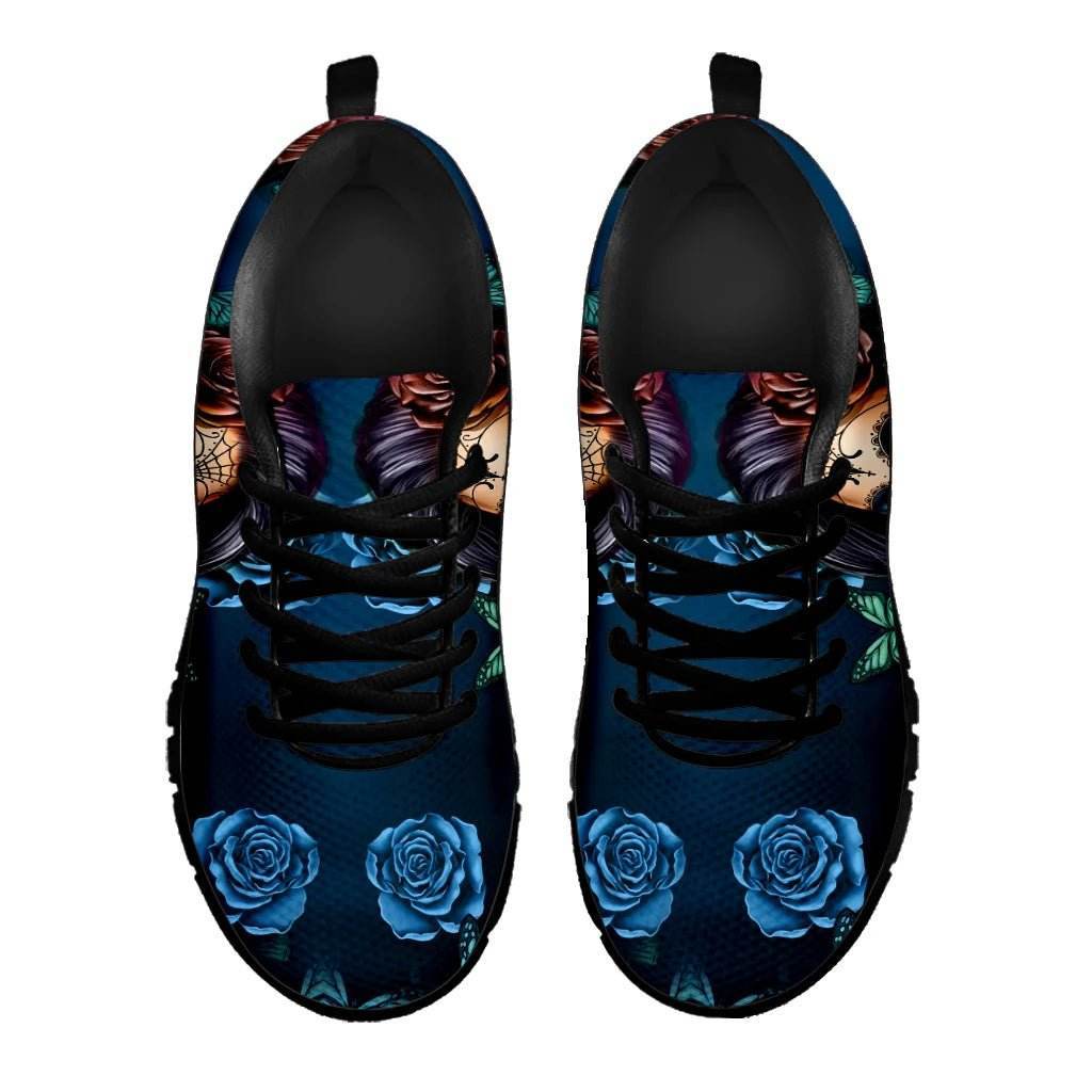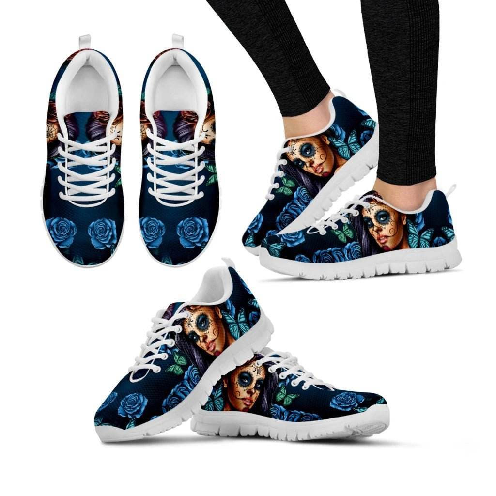Featuring a stunning 3D butterfly and skull sugar design, these sneakers are perfect for those who love to express their individuality. The vibrant blue hues and intricate patterns make them a piece of art for your feet. Pair them with your favorite jeans or a casual dress to add a pop of color and creativity to your outfit.
