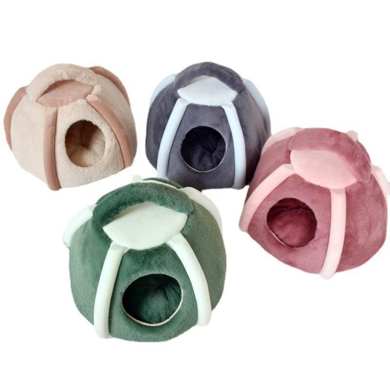 Available in four elegant colors—Grayish Blue, Wine Red, Beige, and Dark Green—this pet house complements any home decor. Choose from two sizes, Large (53x53x40cm) and Small (43x43x30cm), to perfectly fit your pet's needs. The washable design makes cleaning a breeze, ensuring your pet's space stays fresh and inviting.